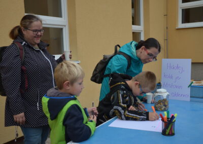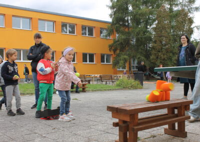Nejprve jsme si vyzkoušeli zábavná stanoviště, která pro nás připravili žáci školního parlamentu. Mohli jsme se také vyfotit v podzimním fotokoutku a samozřejmě si opéct voňavé buřty. Na tuto akci si každý z nás přinesl skřítka a za odměnu dostal sladkou čokoládovou medaili. Skřítkové pak vytvoří podzimní náladu v naší škole.