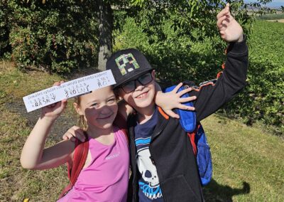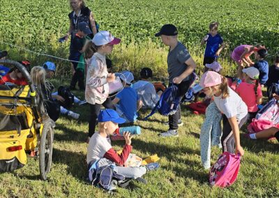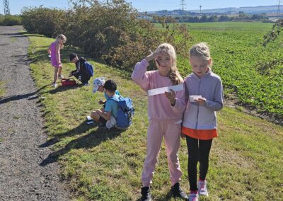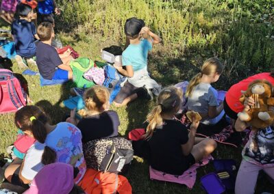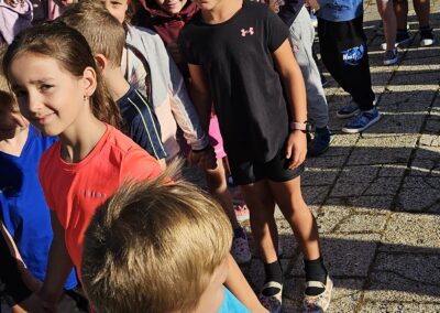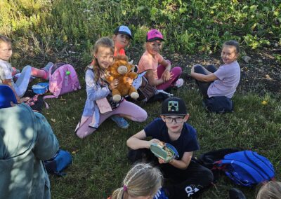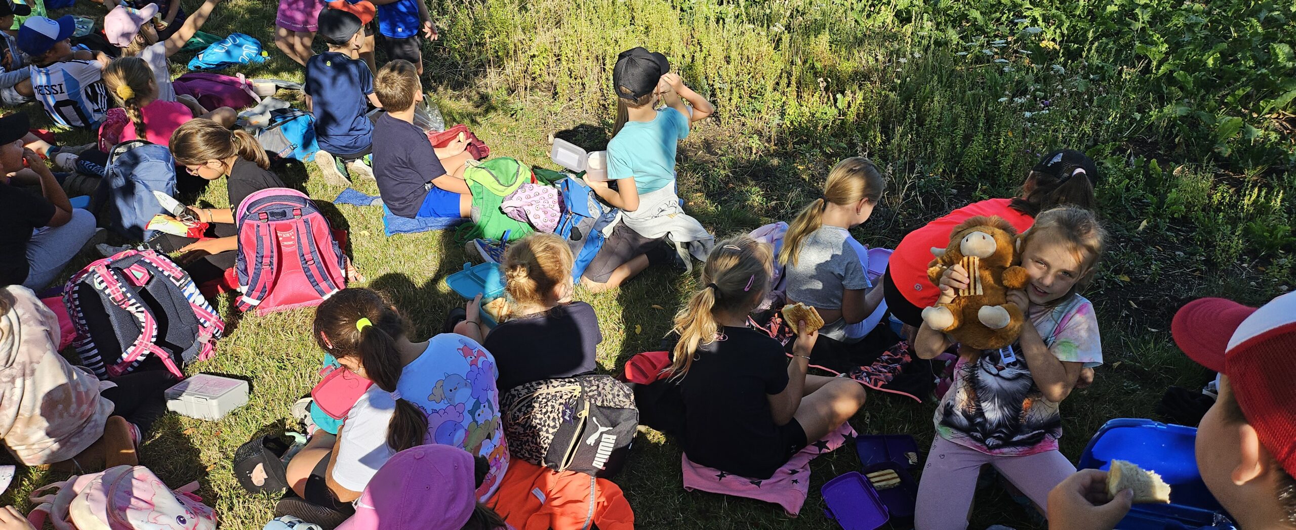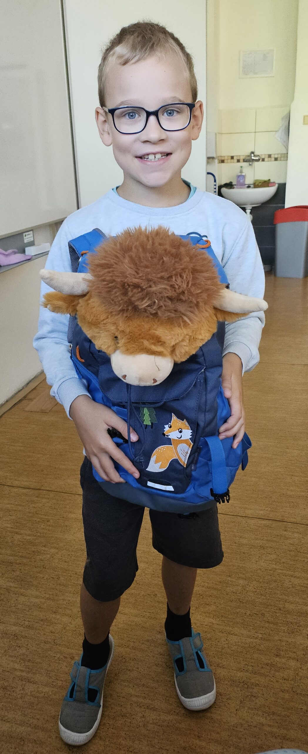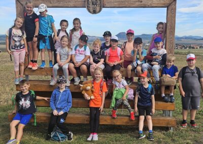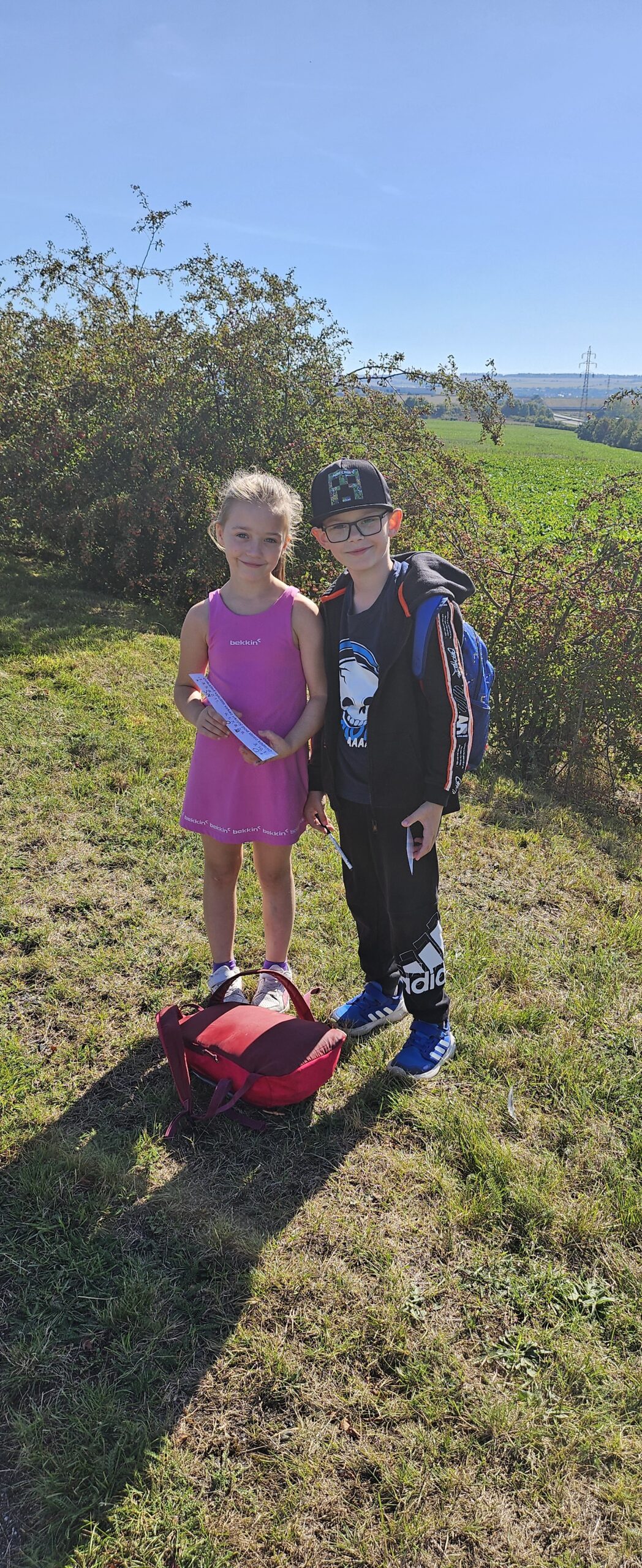 Na branném dni jsme si vyzkoušeli evakuaci školy a na signál jsme rychle opustili budovu školy. Cestou k Vodárenské věži jsme trénovali pravidla silničního provozu a při branné hře jsme si zopakovali důležitá telefonní čísla a přivolání záchranných složek. Den jsme zakončili svačinou a společným hodnocením. Byl to náš první společný výlet s býčkem Druháčkem 🐮😊