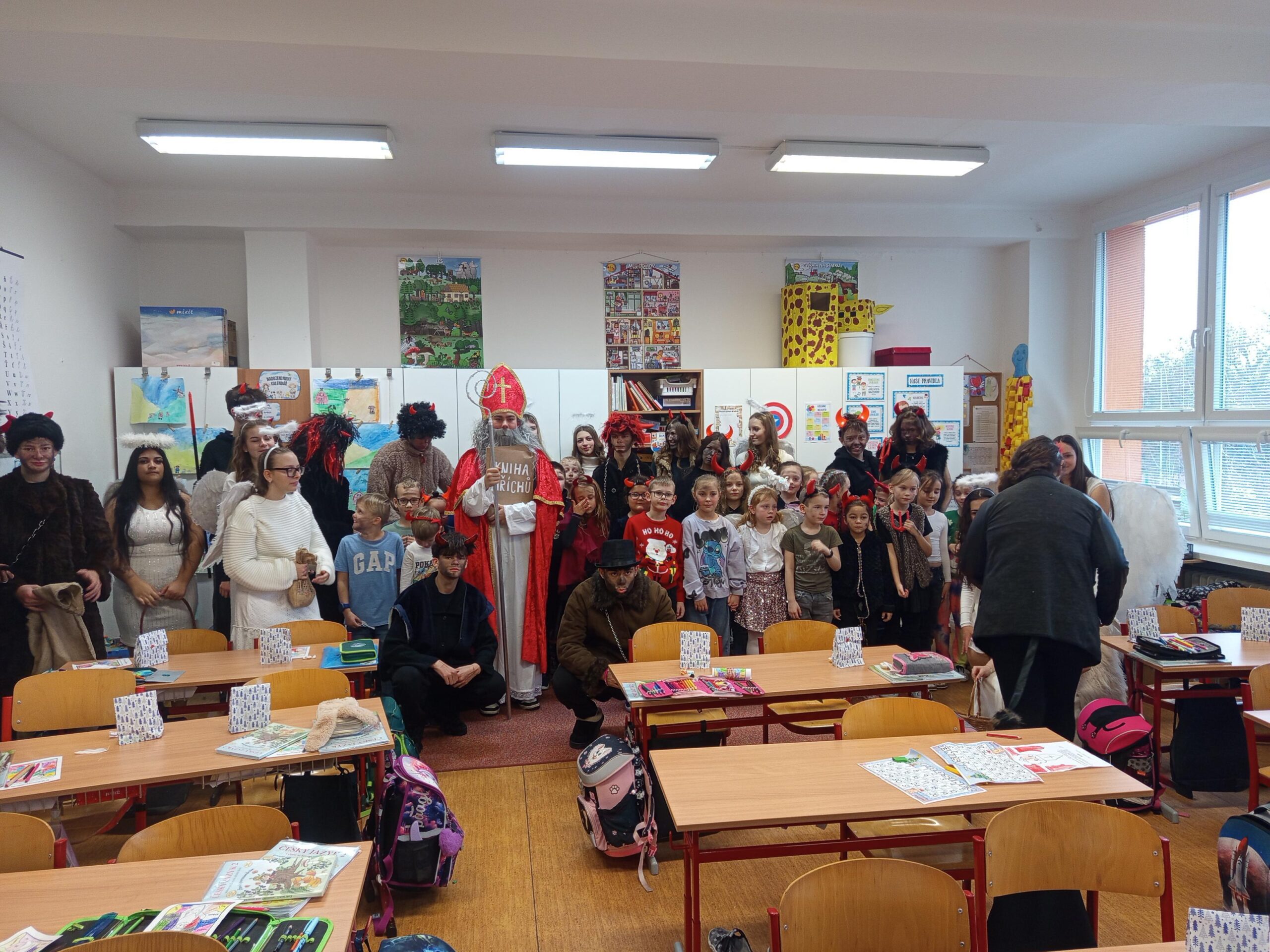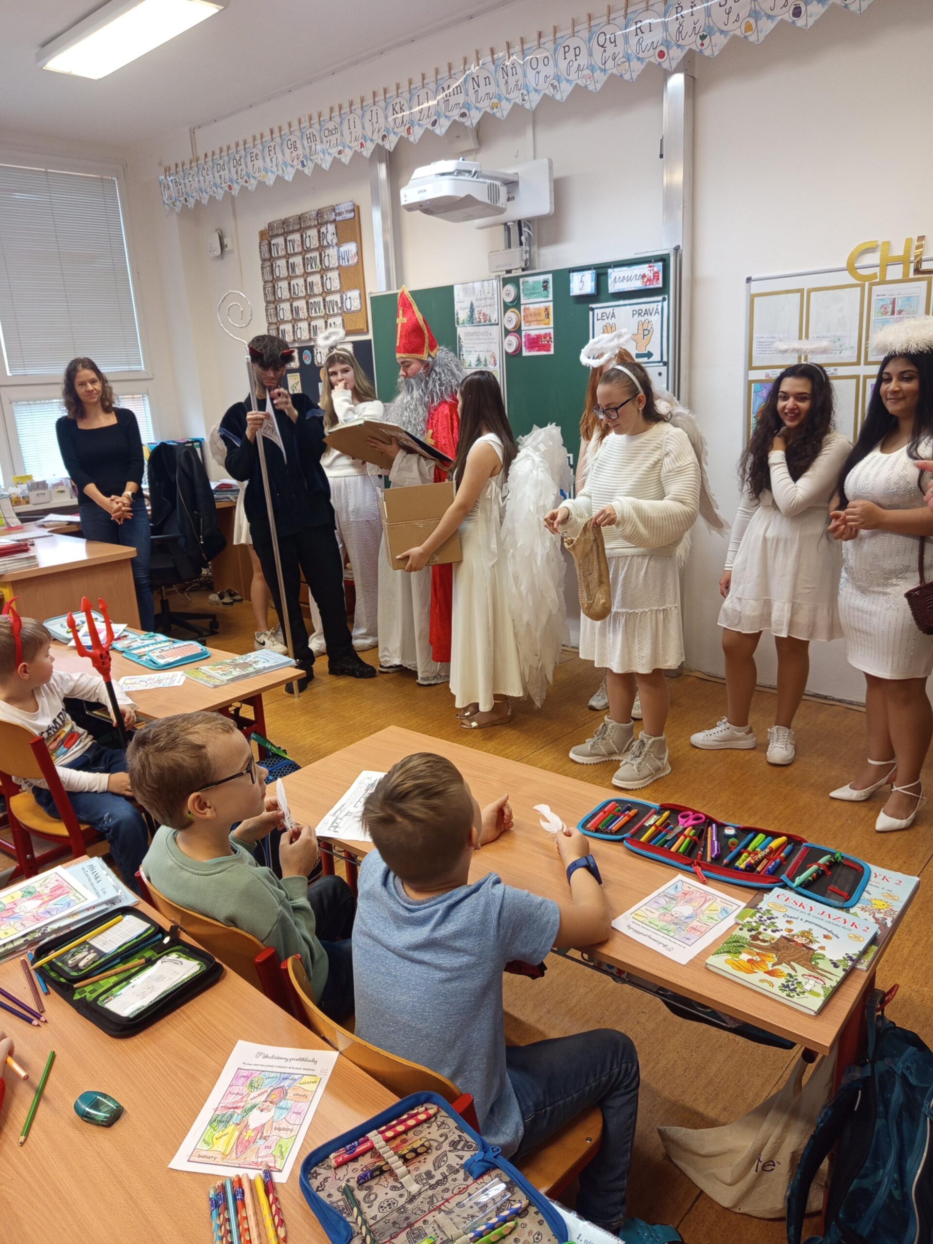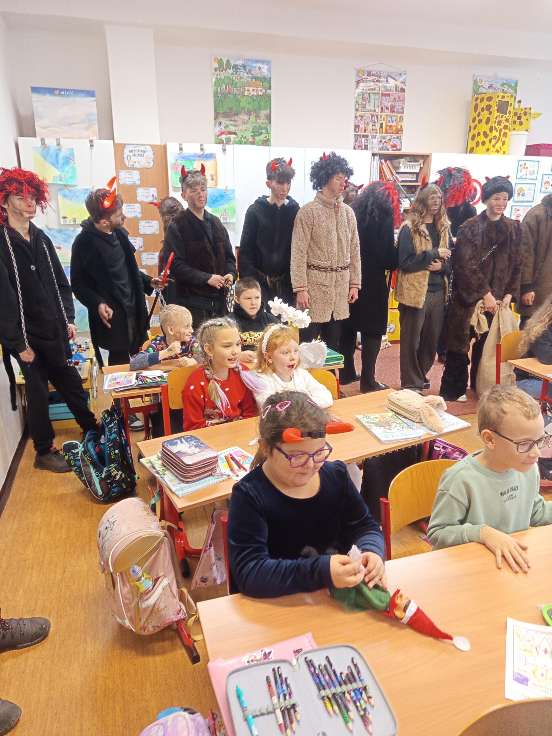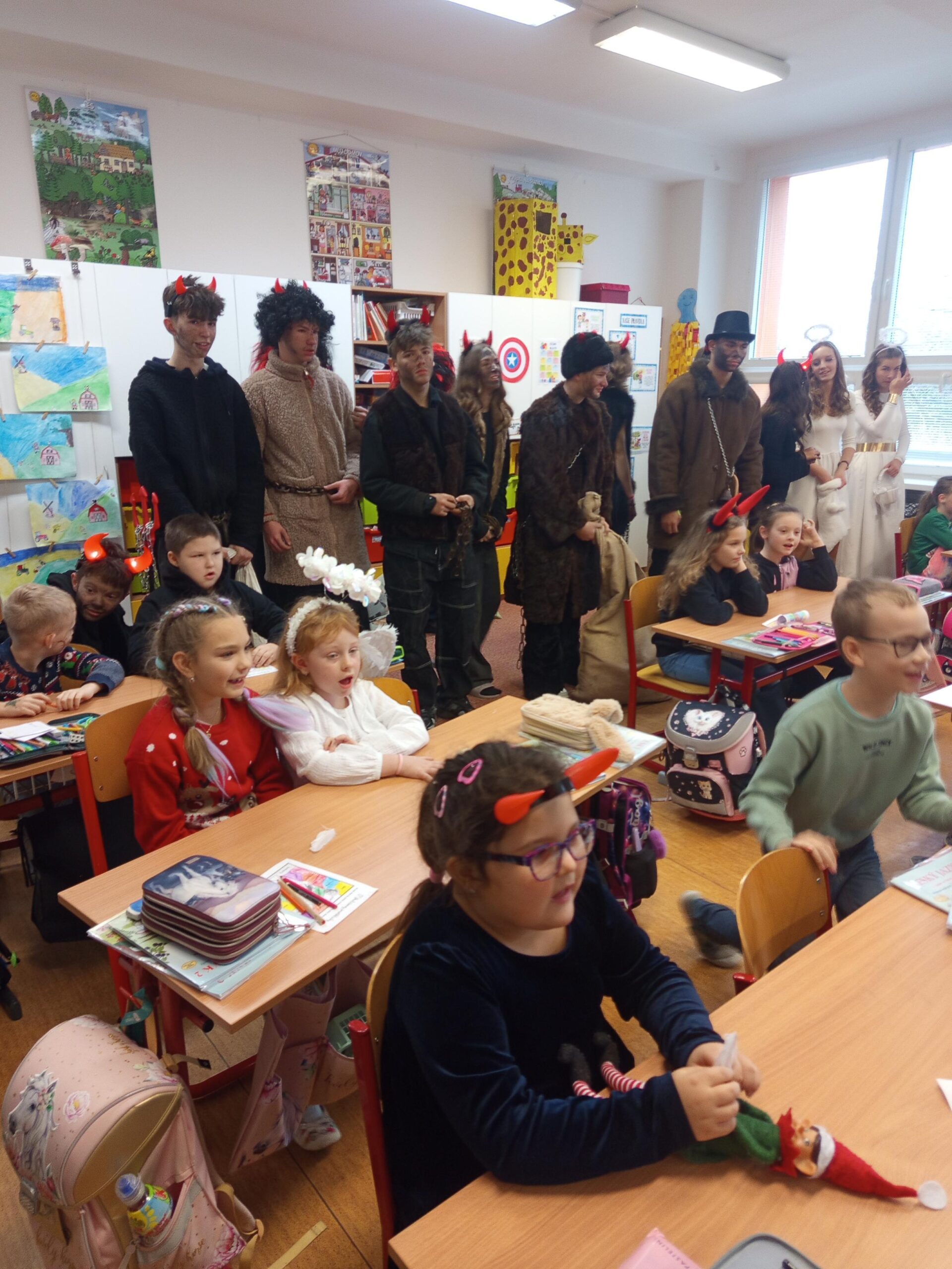 V pátek do naší třídy zavítal Mikuláš se svými věrnými společníky – anděly a čerty. Děti je přivítaly s nadšením a odvážně odpovídaly na jejich otázky o tom, jak se jim dařilo během roku. Andělé přinesli do třídy klid a pochvalu, zatímco čerti se snažili děti jen trochu postrašit, ale spíše pobavit. Mikuláš nakonec všechny pochválil, že se snaží být pilné a kamarádské. Mikulášská návštěva rozzářila naši třídu a zpříjemnila začátek adventu.