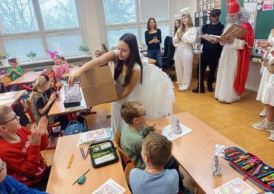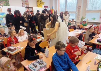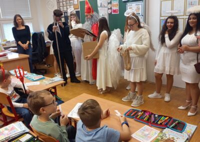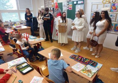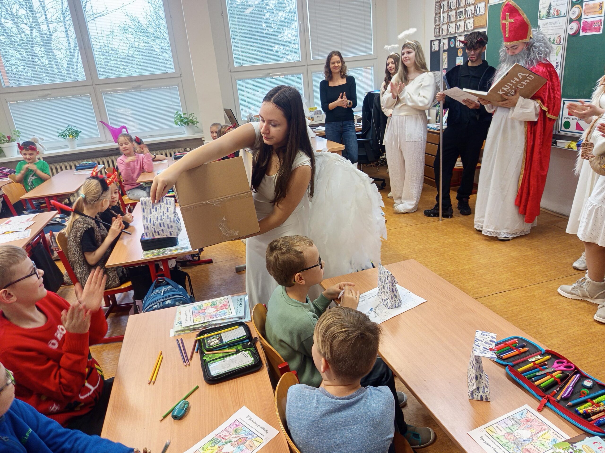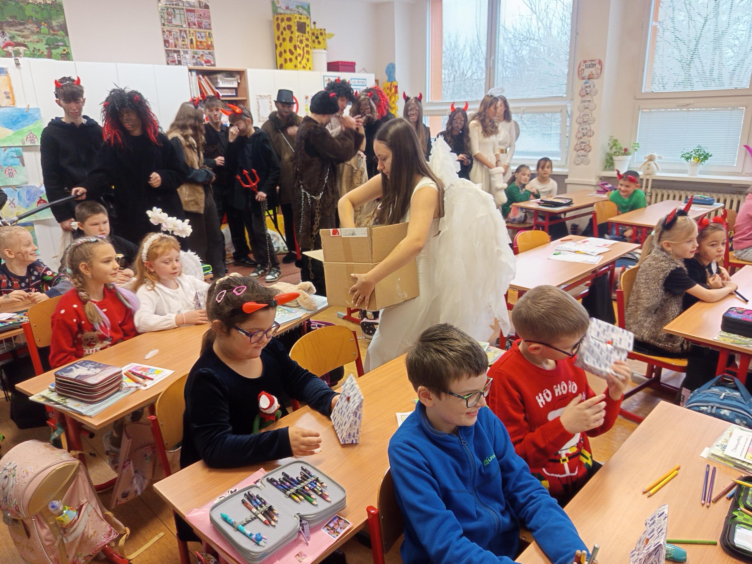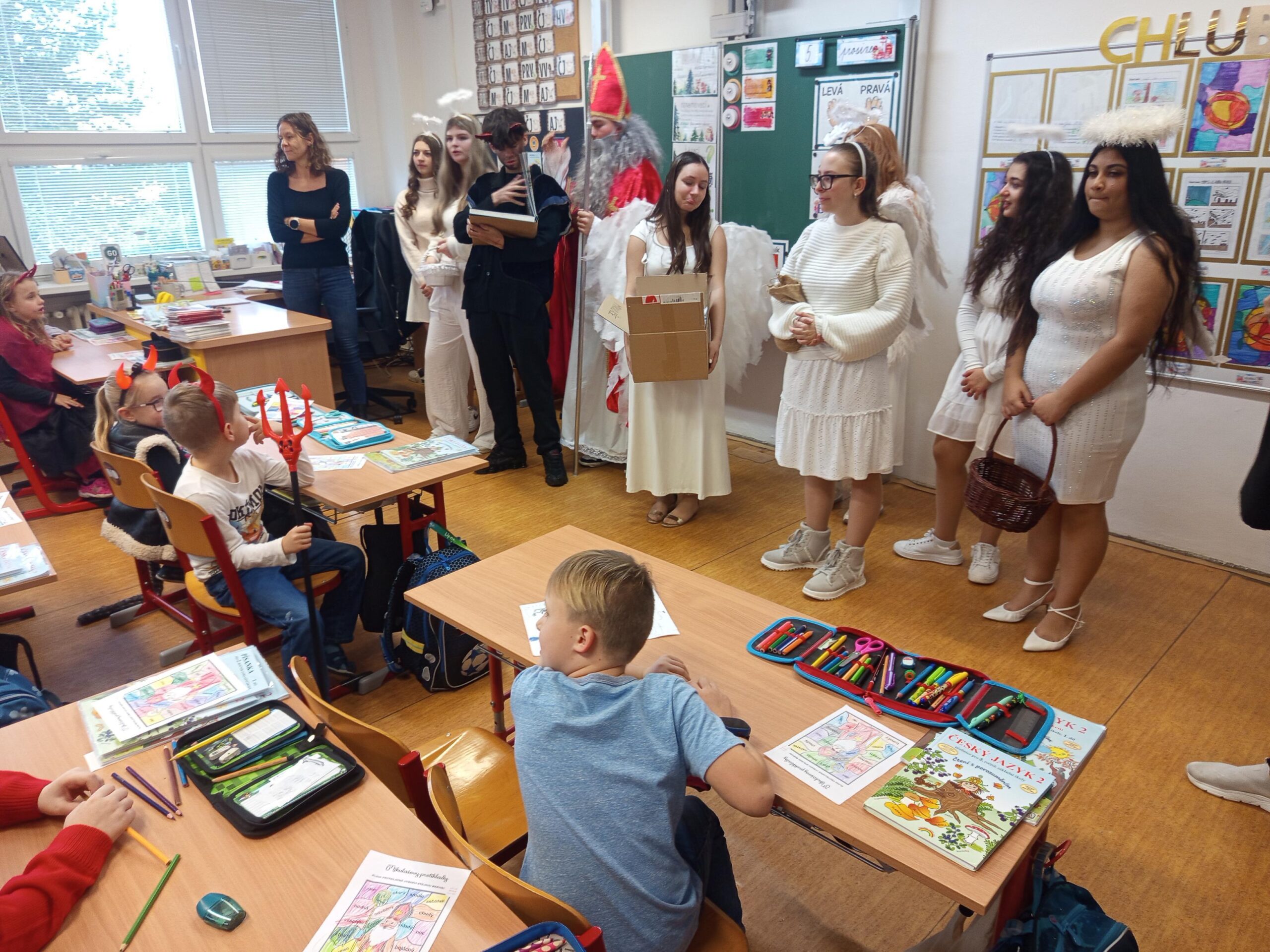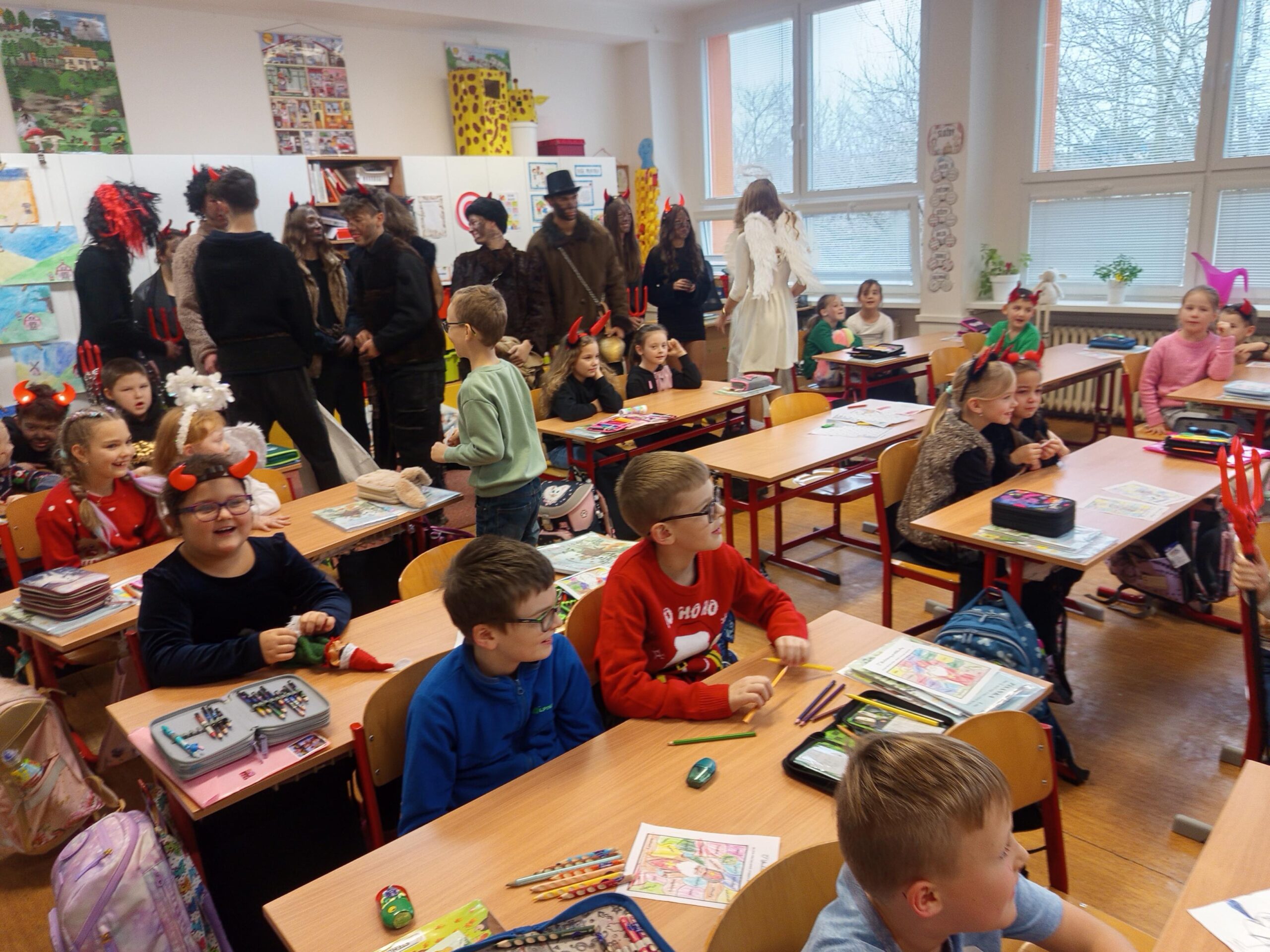 V pátek do naší třídy zavítal Mikuláš se svými věrnými společníky – anděly a čerty. Děti je přivítaly s nadšením a odvážně odpovídaly na jejich otázky o tom, jak se jim dařilo během roku. Andělé přinesli do třídy klid a pochvalu, zatímco čerti se snažili děti jen trochu postrašit, ale spíše pobavit. Mikuláš nakonec všechny pochválil, že se snaží být pilné a kamarádské. Mikulášská návštěva rozzářila naši třídu a zpříjemnila začátek adventu.