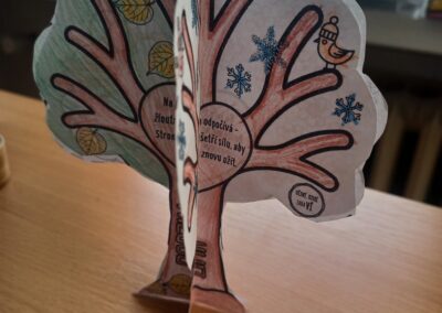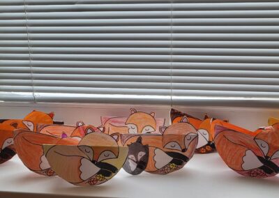 V měsíci říjnu se naše třída pustila do pestrého podzimního tvoření. Během hodin výtvarné i pracovní výchovy jsme využívali přírodniny, které děti nasbíraly při procházkách – barevné listy, kaštany. Společně jsme z nich vyráběli podzimní dekorace do třídy, obrázky z listů. Děti si při práci vyzkoušely různé výtvarné techniky, rozvíjely svou fantazii i jemnou motoriku a hlavně si užily spoustu radosti z tvoření. Naše třída teď díky nim září krásnými podzimními barvami.