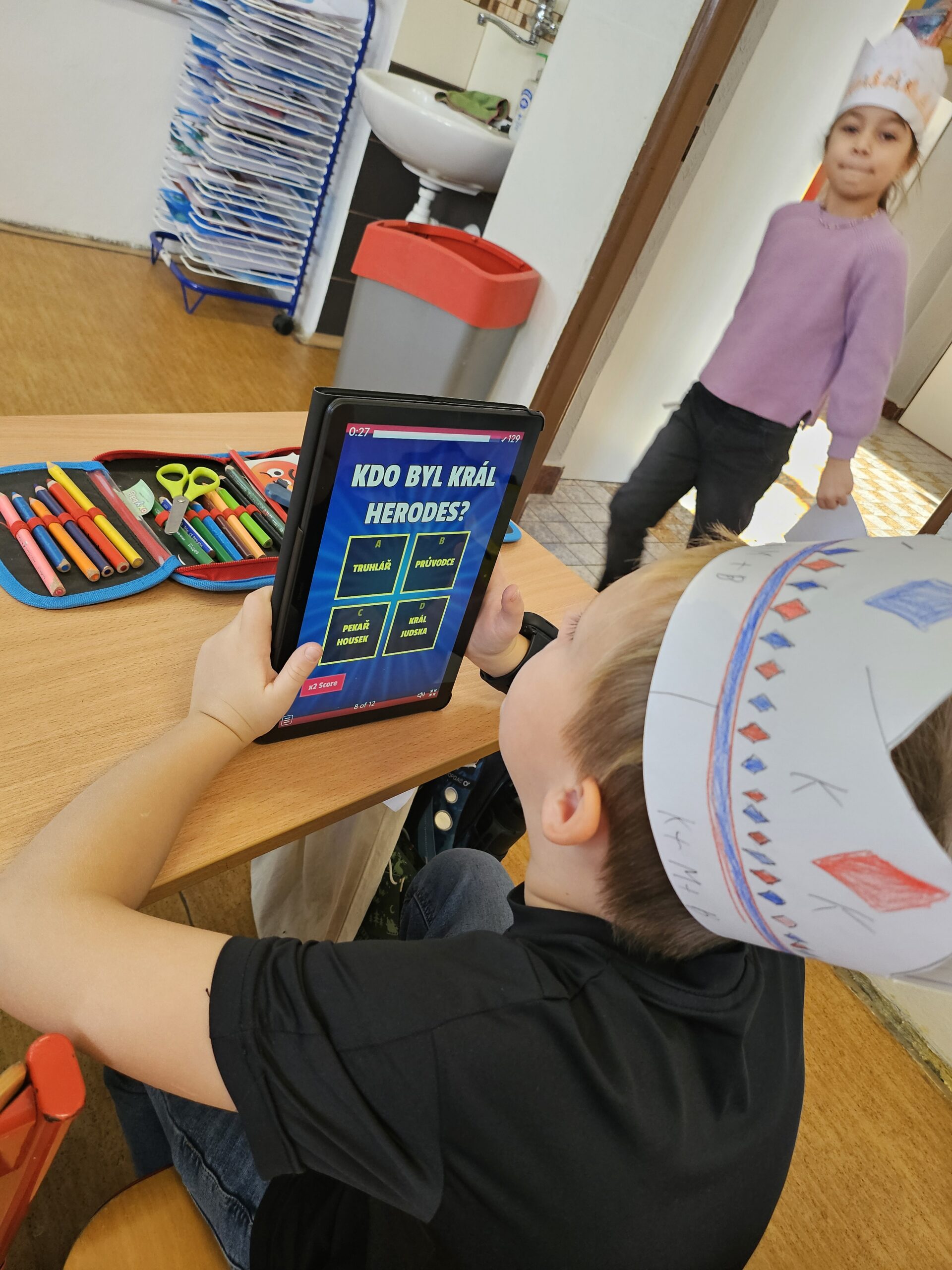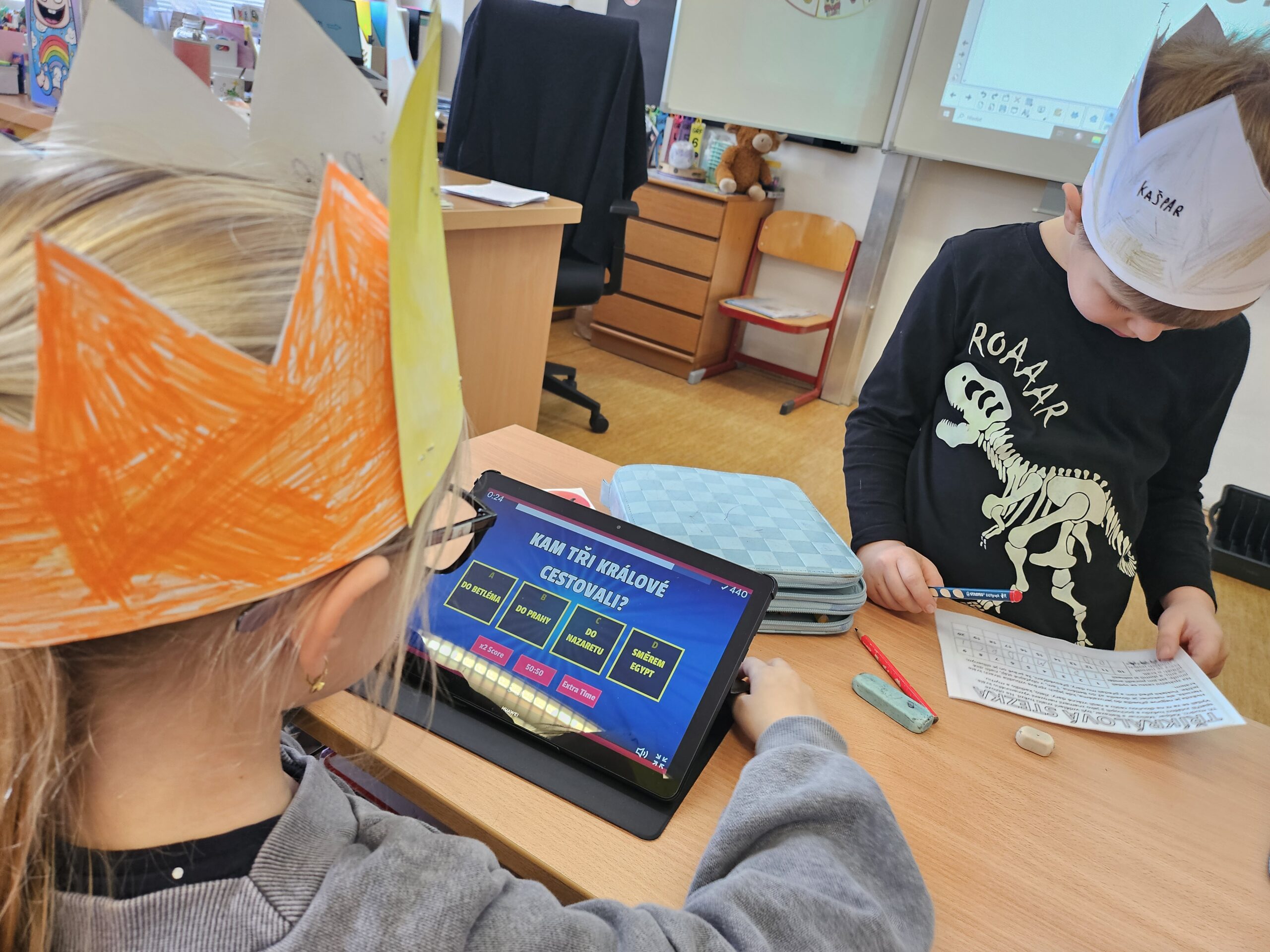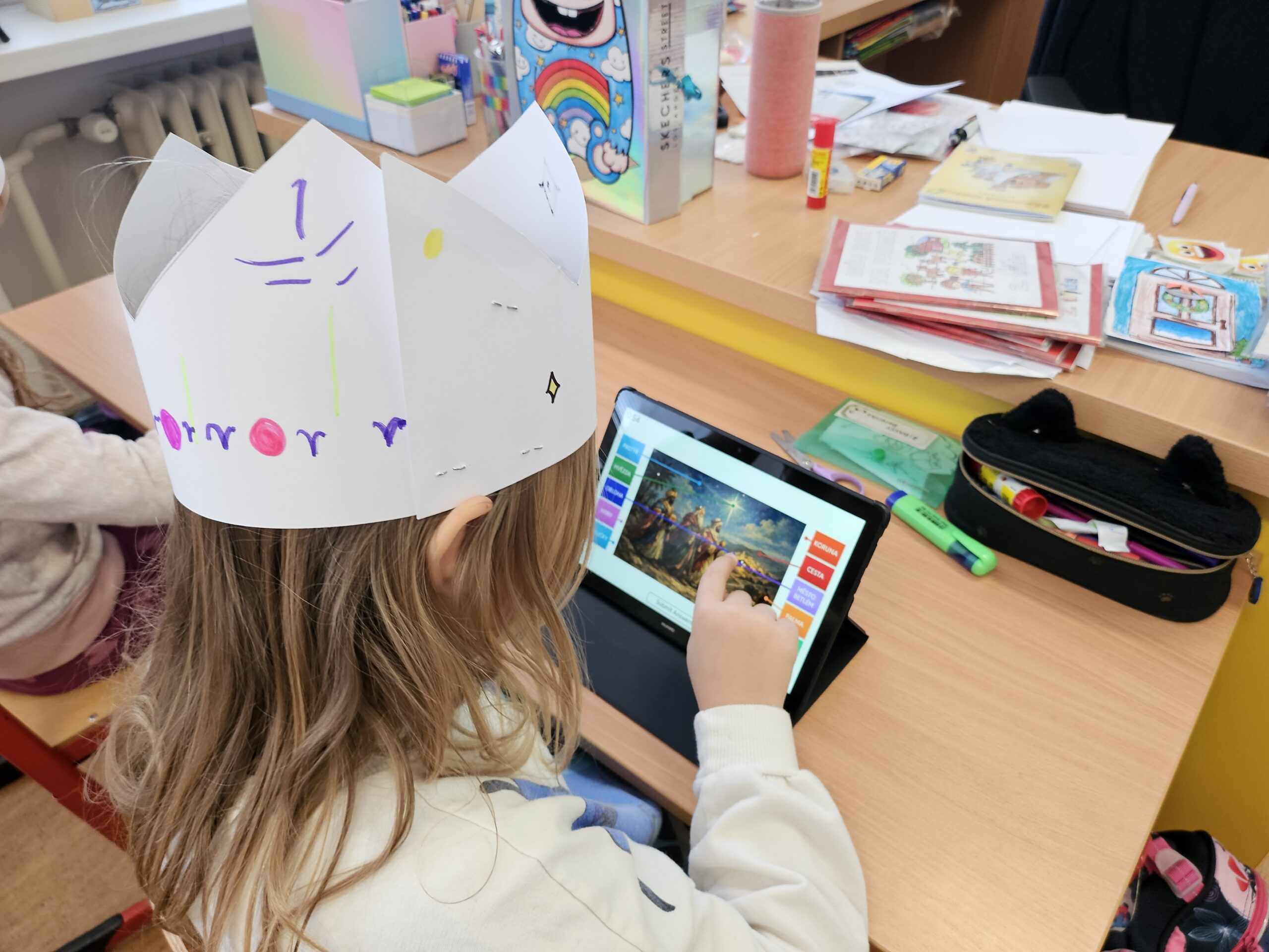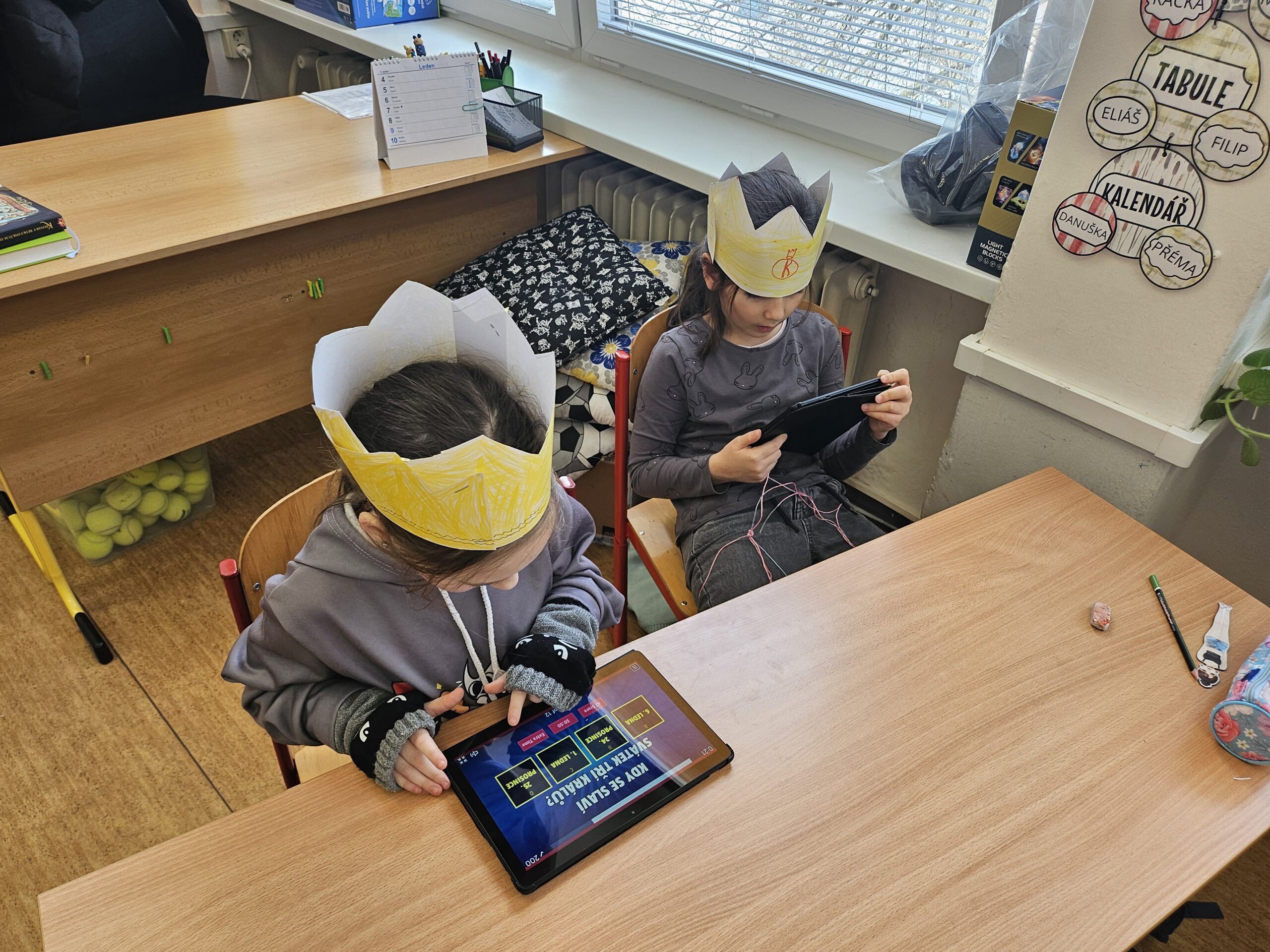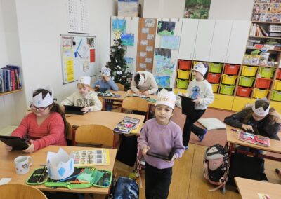 V úterý jsme se vydali na Tříkrálovou stezku. Stezku jsem zahájili výzvou. Děti si vyrobily korunu, která jim během stezky nesměla spadnout. Děti pracovaly s textem inspirovaný příběhem Tří králů, procvičovaly čtení s porozuměním a postupně plnily úkoly na jednotlivých zastaveních. Každá správná odpověď je přiblížila k tajence. Na závěr se děti prostřednictvím QR kódů, dostaly k aktivitám, kde si mohly ověřit znalosti získané během stezky. 🤴🏻📖💻
