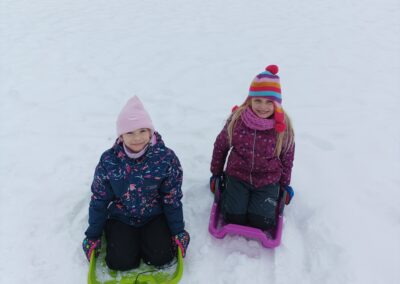 Dnešní dopolední výuka se pro žáky naší třídy nesla ve znamení radosti, pohybu a zimní pohody. Využili jsme čerstvou sněhovou nadílku a část vyučování jsme přesunuli ven, kde na děti čekaly veselé sněhové hrátky. Žáci si užili bobování, různé hry ve sněhu i společné dovádění na sněhu. Nechyběl smích, dobrá nálada a přirozený pohyb na čerstvém vzduchu. Děti si nenásilnou formou upevnily spolupráci v kolektivu a zároveň si užily krásy zimní přírody. Taková zpestření výuky jsou pro žáky vítanou změnou a přispívají nejen k jejich fyzické aktivitě, ale i k celkové pohodě. Dnešní sněhové dopoledne se vydařilo a děti se vracely zpět do školy s úsměvem na tváři.