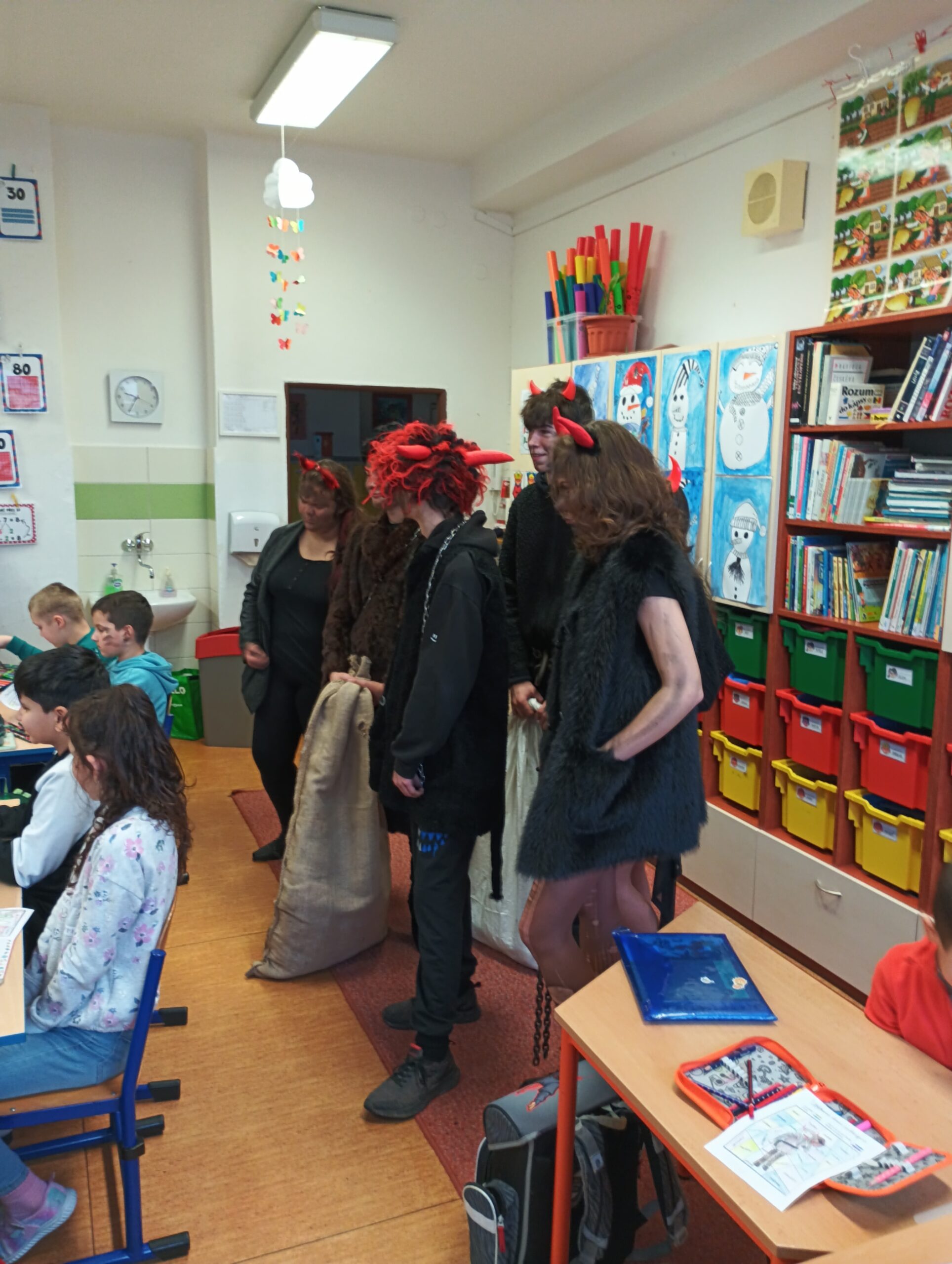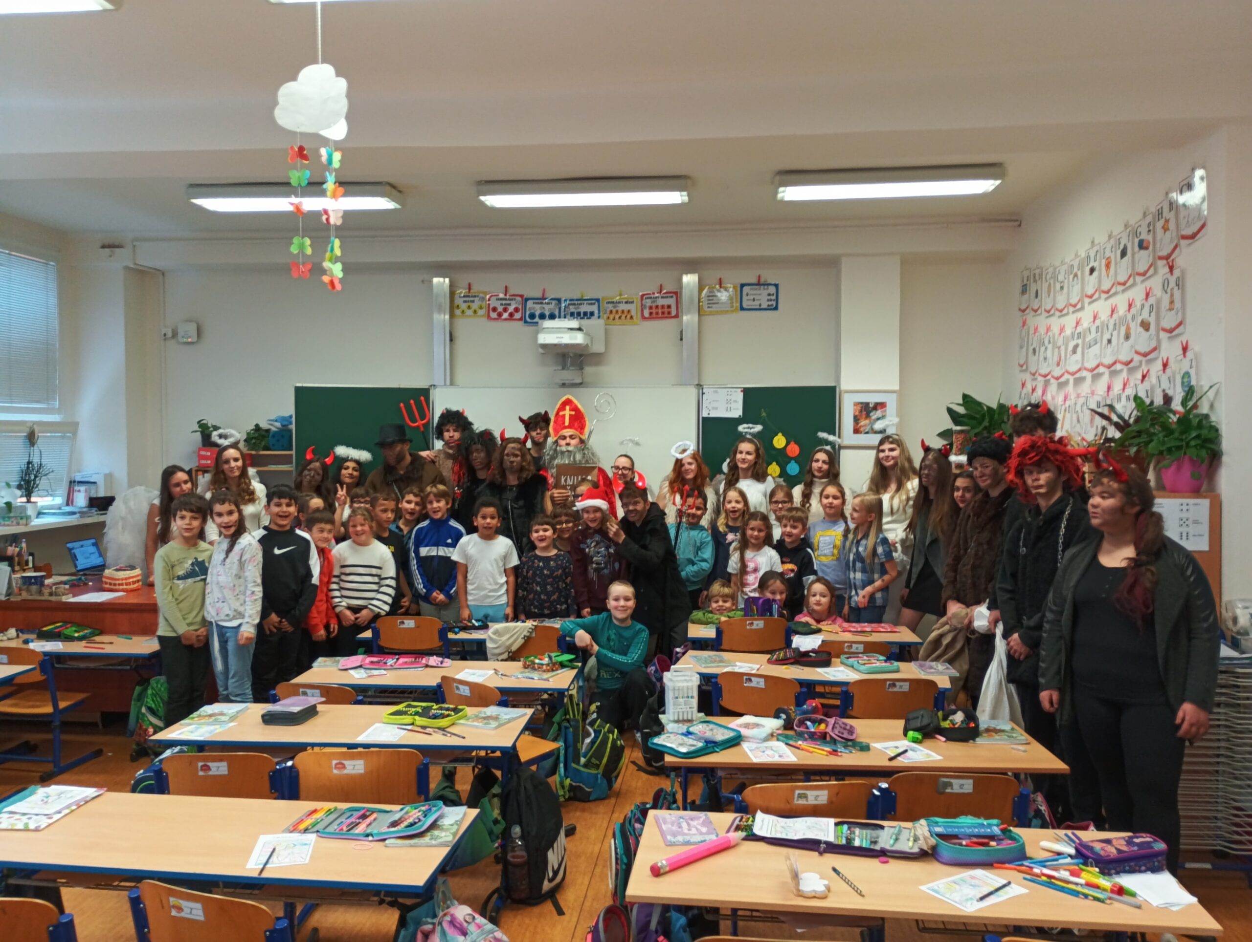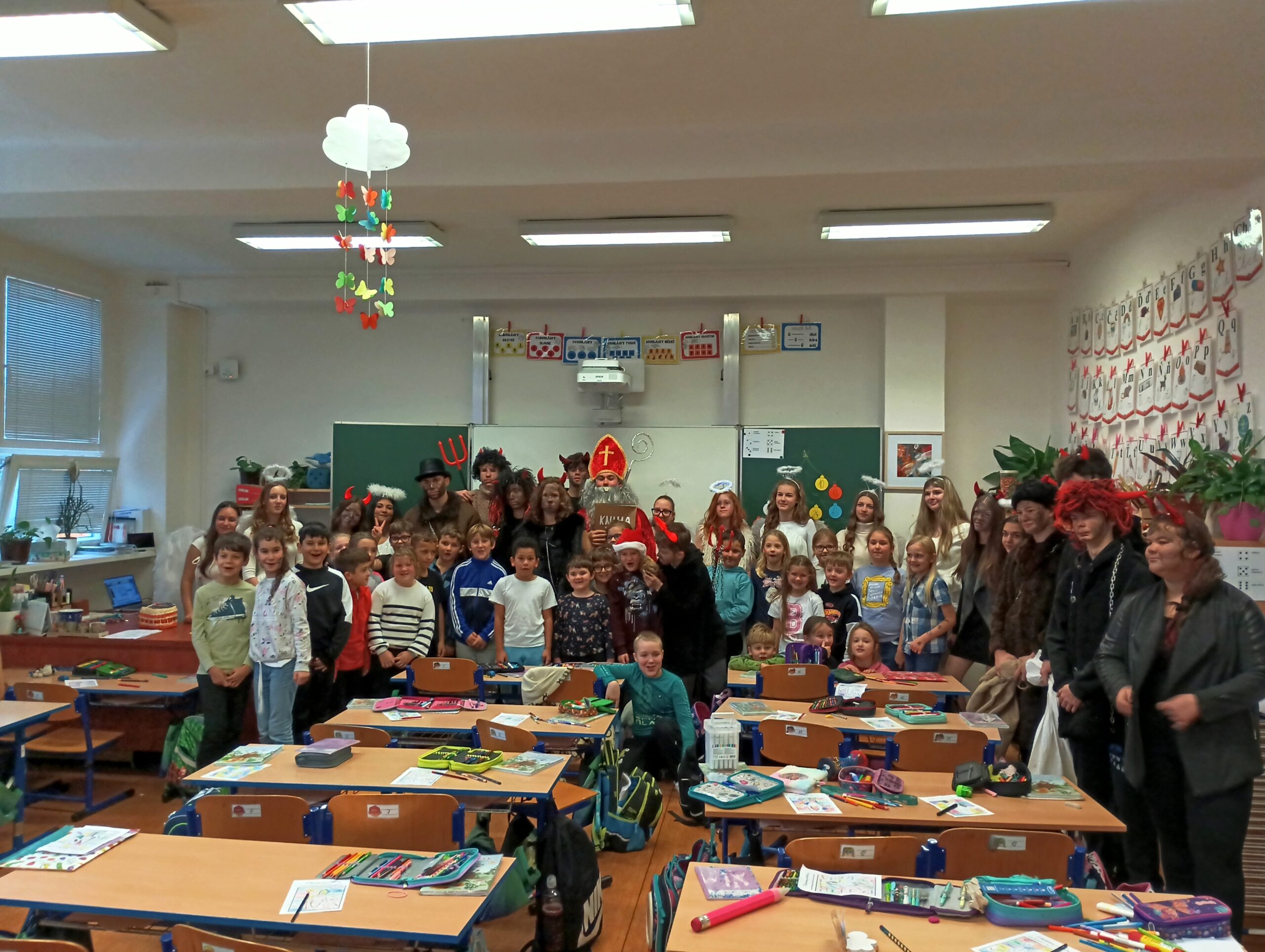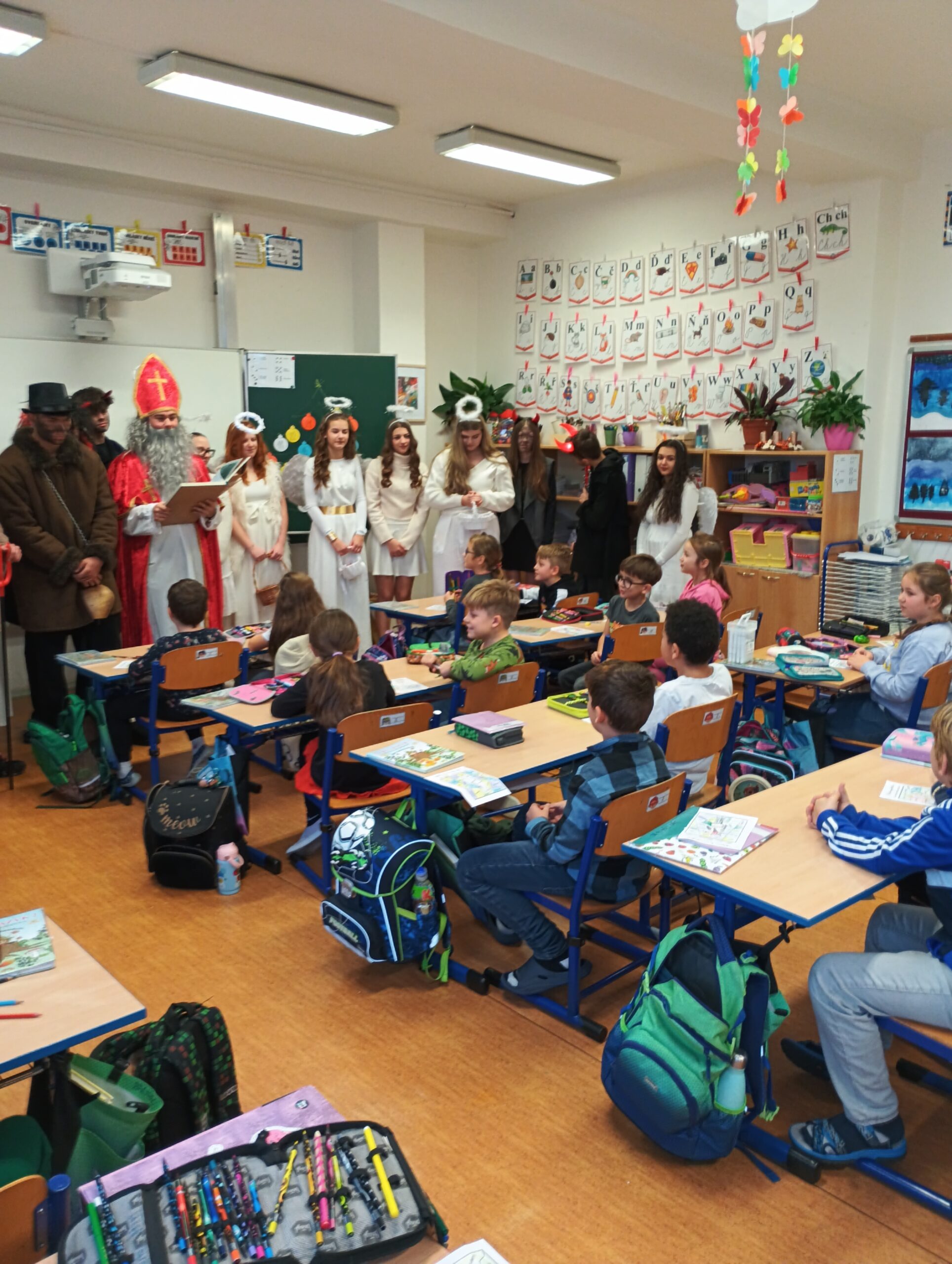 V pátek zavítala do třídy 2. B vzácná trojice – Mikuláš, čert a anděl. Děti se na jejich příchod těšily, ale zároveň panovala i malá nervozita. Mikuláš společně s andělem nejprve zhodnotili chování žáků a připomněli jim, co je potřeba do budoucna zlepšit. Čert se občas významně zachrčel, ale nakonec nikdo nemusel mít obavy.