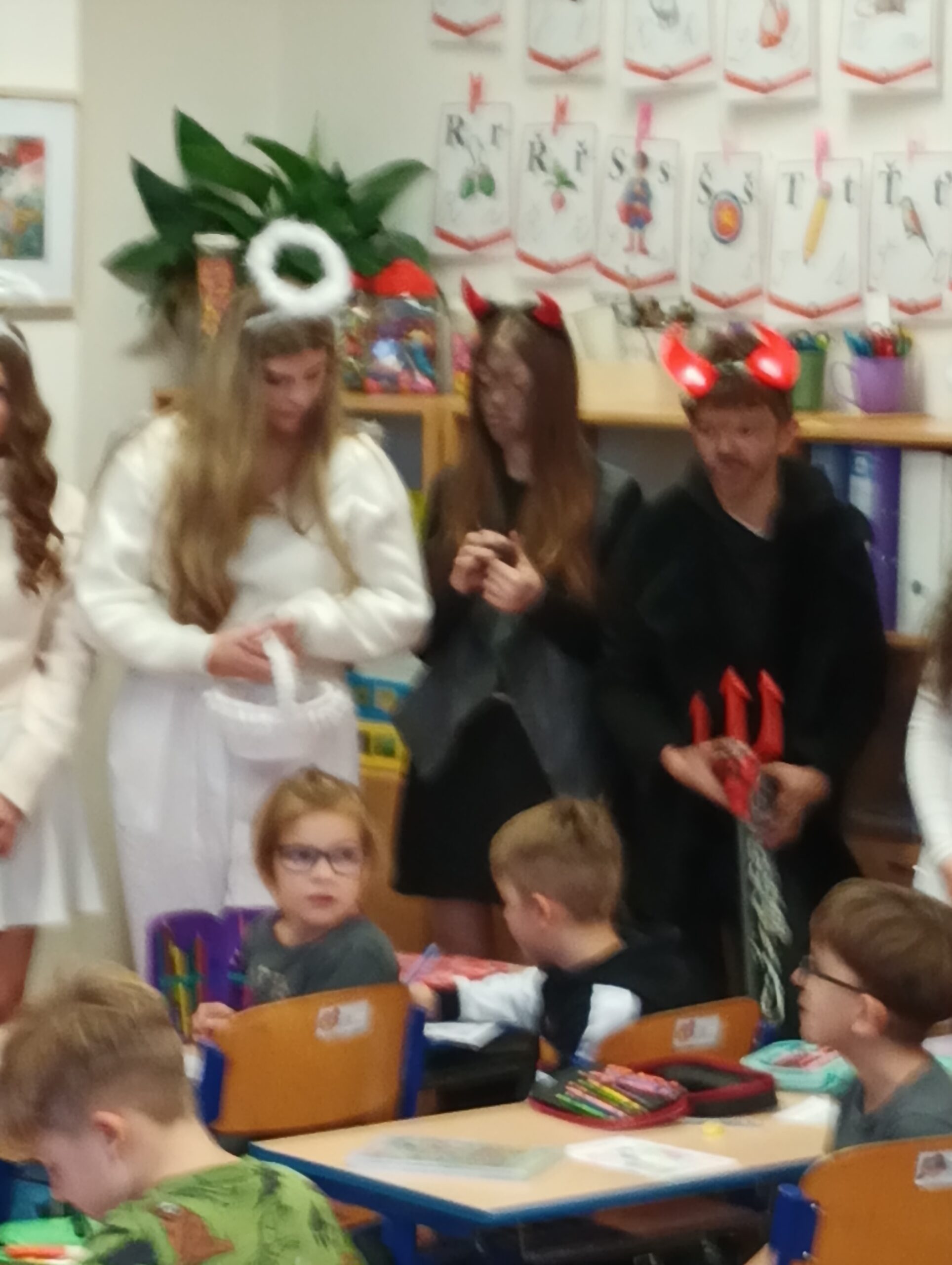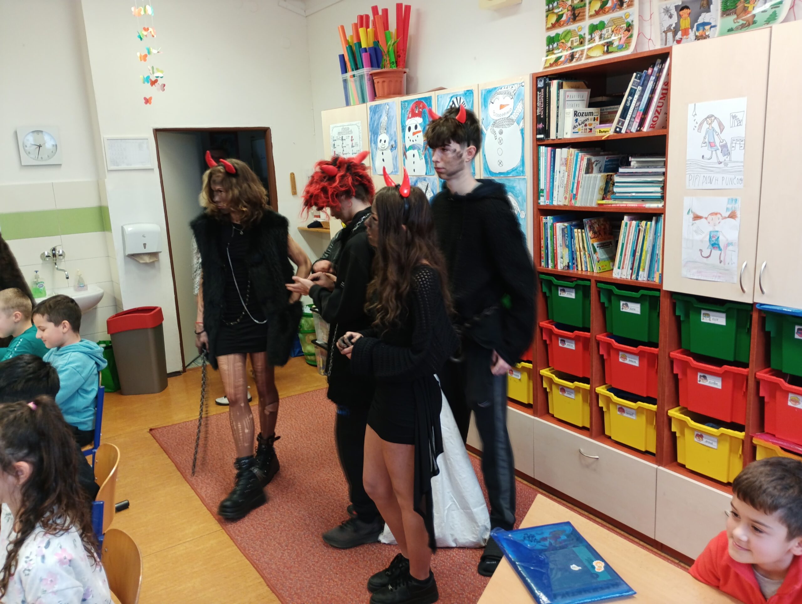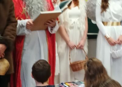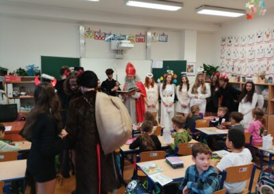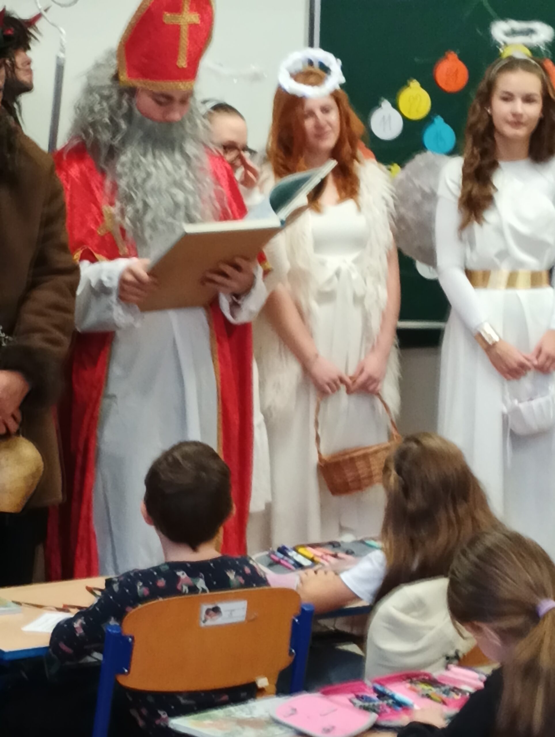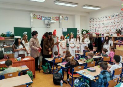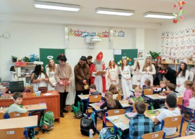 V pátek zavítala do třídy 2. B vzácná trojice – Mikuláš, čert a anděl. Děti se na jejich příchod těšily, ale zároveň panovala i malá nervozita. Mikuláš společně s andělem nejprve zhodnotili chování žáků a připomněli jim, co je potřeba do budoucna zlepšit. Čert se občas významně zachrčel, ale nakonec nikdo nemusel mít obavy.