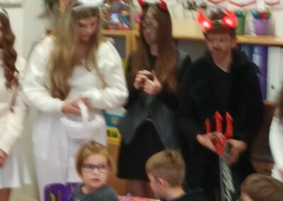 Po krátkém pokárání dostaly všechny děti sladkou odměnu za svou snahu během celého roku. Návštěva proběhla v klidné a pohodové atmosféře a žáci si tento mikulášský zážitek velmi užili.