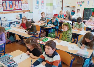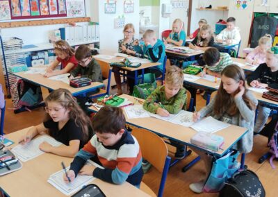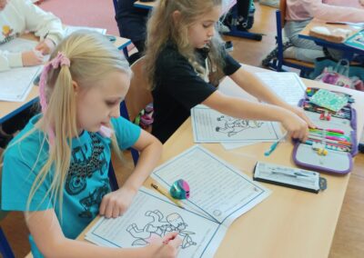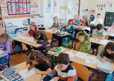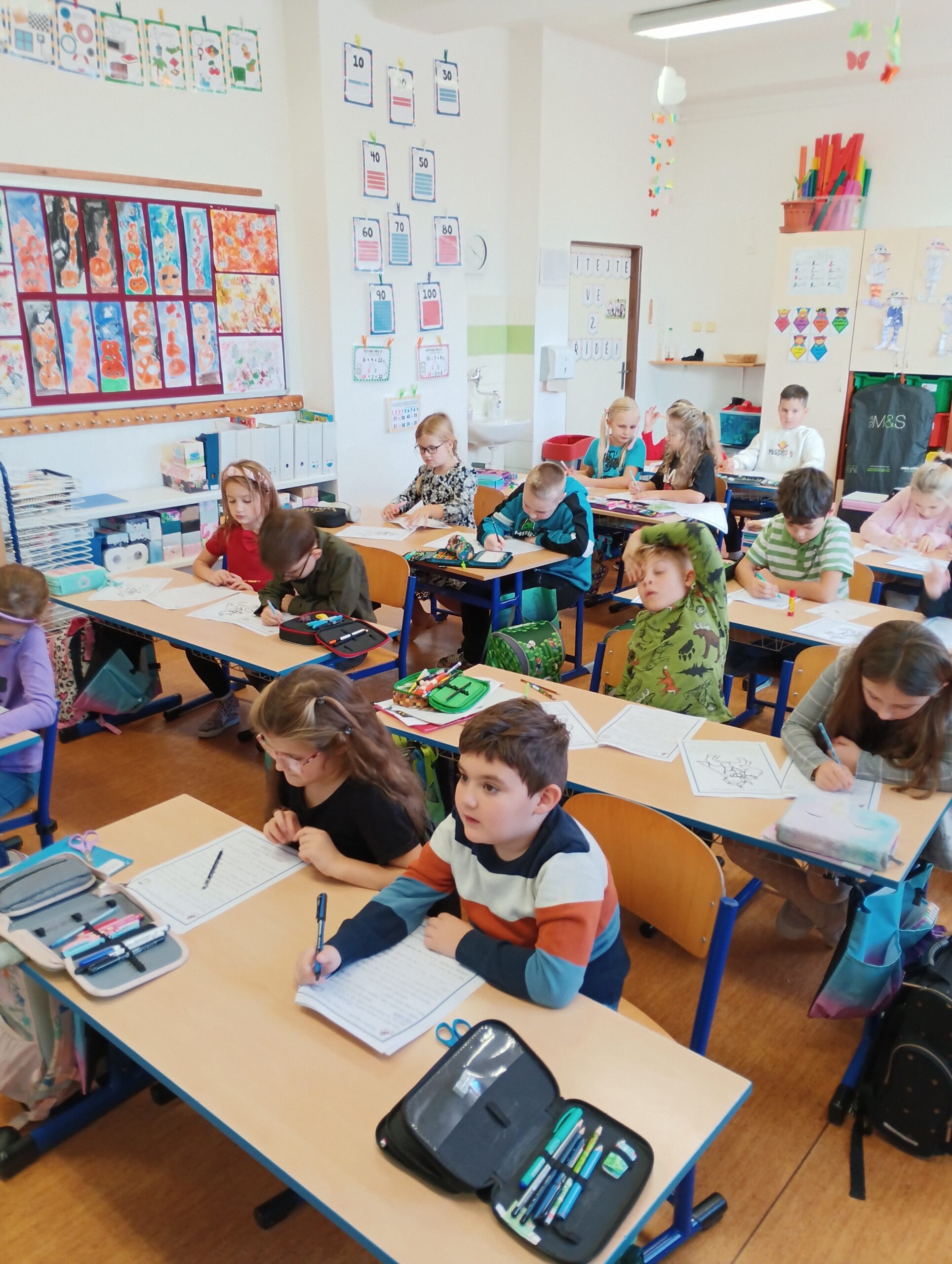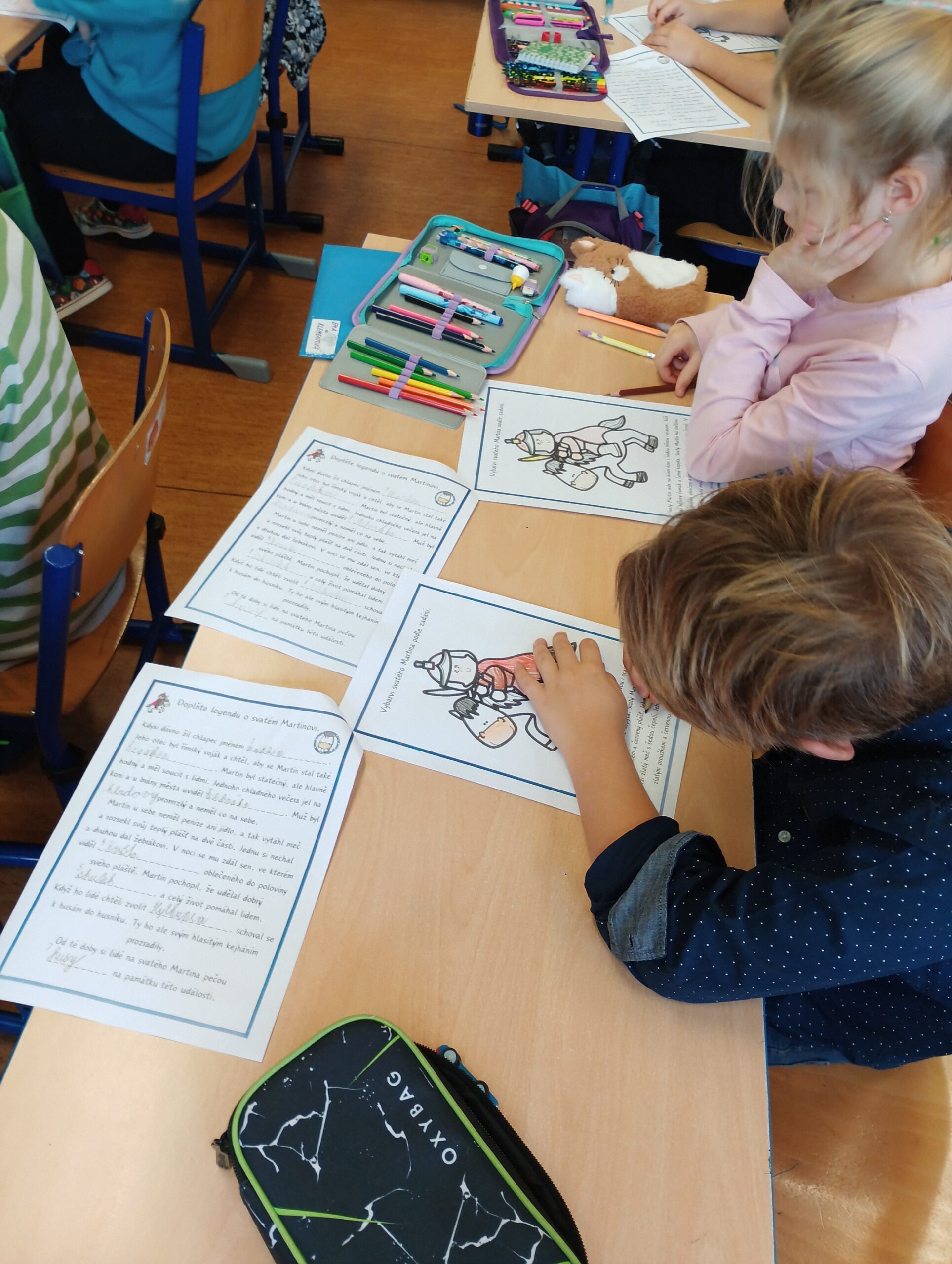 V hodině českého jazyka jsme si přečetli příběh o svatém Martinovi, povídali jsme si o tom, proč se říká, že „Martin přijíždí na bílém koni“, a společně jsme doplňovali pracovní listy. V matematice jsme počítali slovní úlohy a procvičovali jsme sčítání i odčítání. Nechyběl ani zábavný kvíz, ve kterém si děti ověřily, co všechno si o tomto svátku zapamatovaly.
