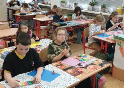 Zúčastnili jsme se také výtvarné soutěže, ve které jsme tvořili plakát ke Snídaňovým klubům. Děti pracovaly s velkým nadšením a vznikly opravdu povedené výtvory.