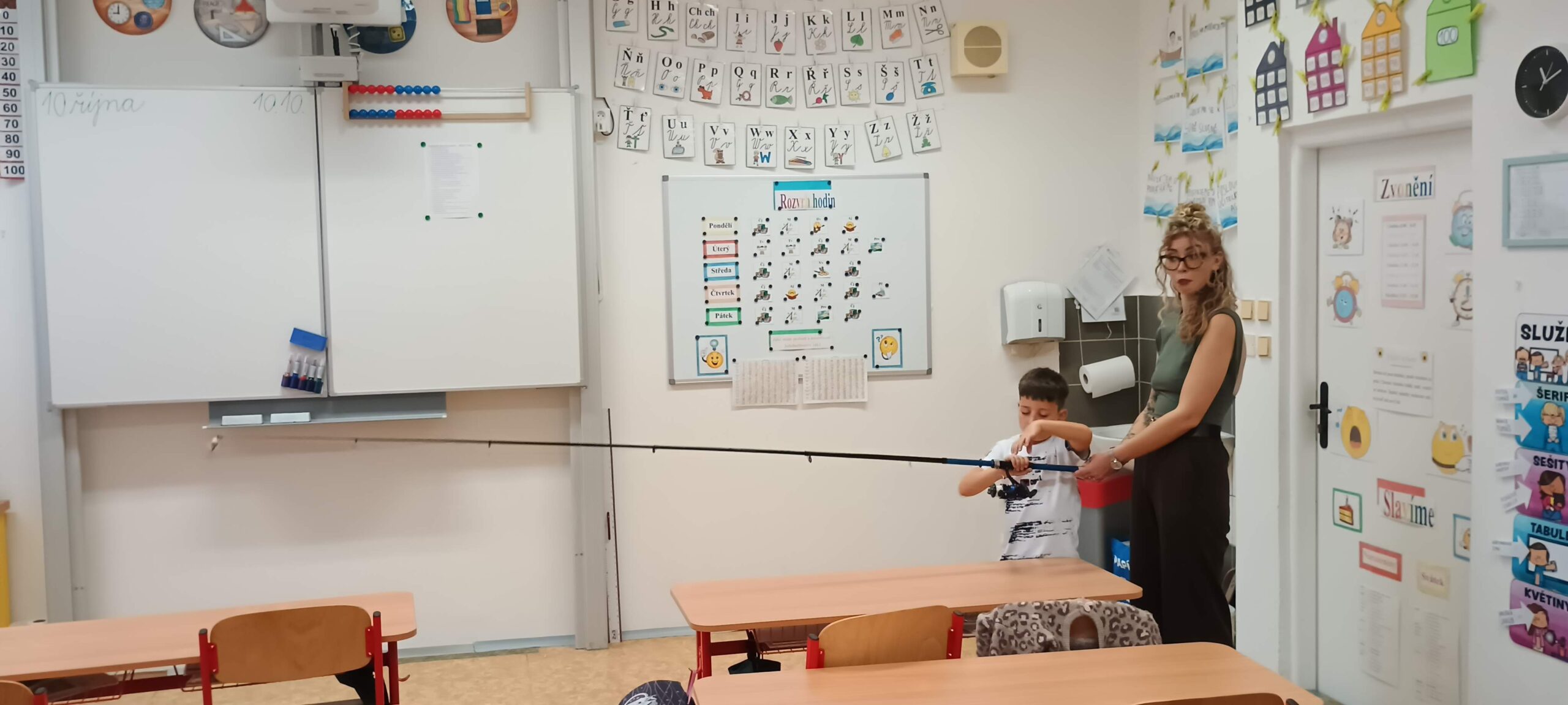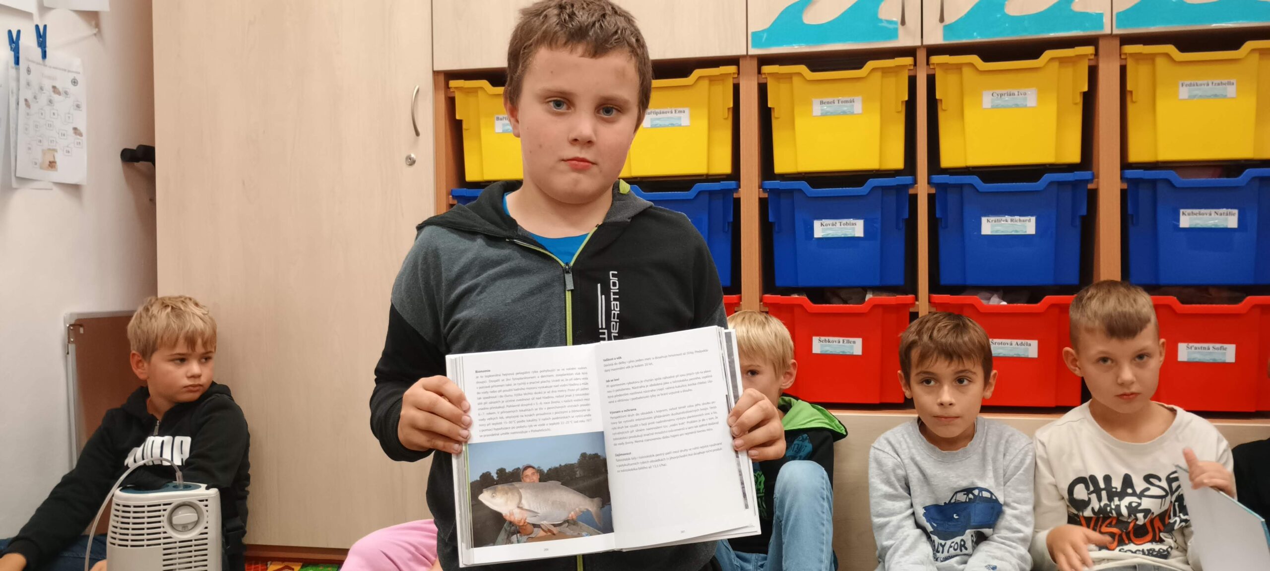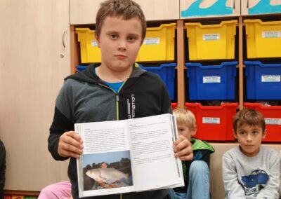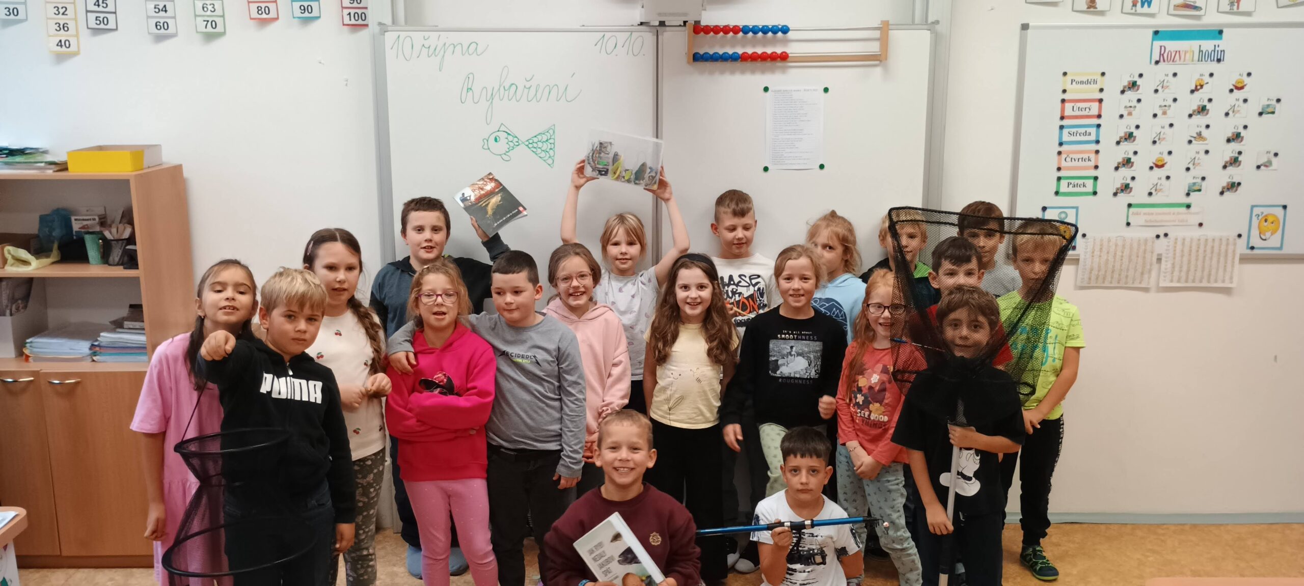 Pátek 10. 10. 2025 byl ve znamení rybaření. Zajímavou přednášku si připravili sami žáci. Dozvěděli jsme se, jaké jsou zásady správného rybolovu, jak se chovat k přírodě, rybám a také spoustu zajímavostí o tom, jaké ryby žijí v našich řekách a rybnících. Ukázali jsme si také různé druhy rybářského náčiní a návnad, které si naši spolužáci přinesli. Bylo úžasné vidět opravdové pruty, háčky, podběráky apod. Podívali jsme se i na zajímavé knihy o rybaření, ze kterých se dá hodně naučit. Celá přednáška byla moc povedená a všichni jsme získali spoustu nových a užitečných informací. Moc děkujeme našim spolužákům, kteří ji připravili – Kryštof Bařtipán, Tomáš Beneš, Ivo Cyprián, Marek Janoušek, Míša Kudrna, Majda Rendlová a Tomáš Zetek. Bylo to skvělé!