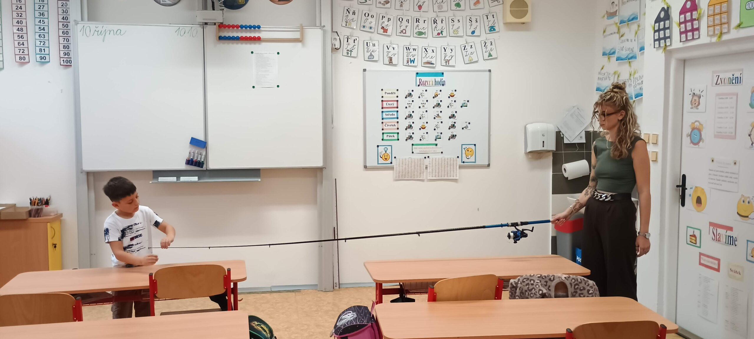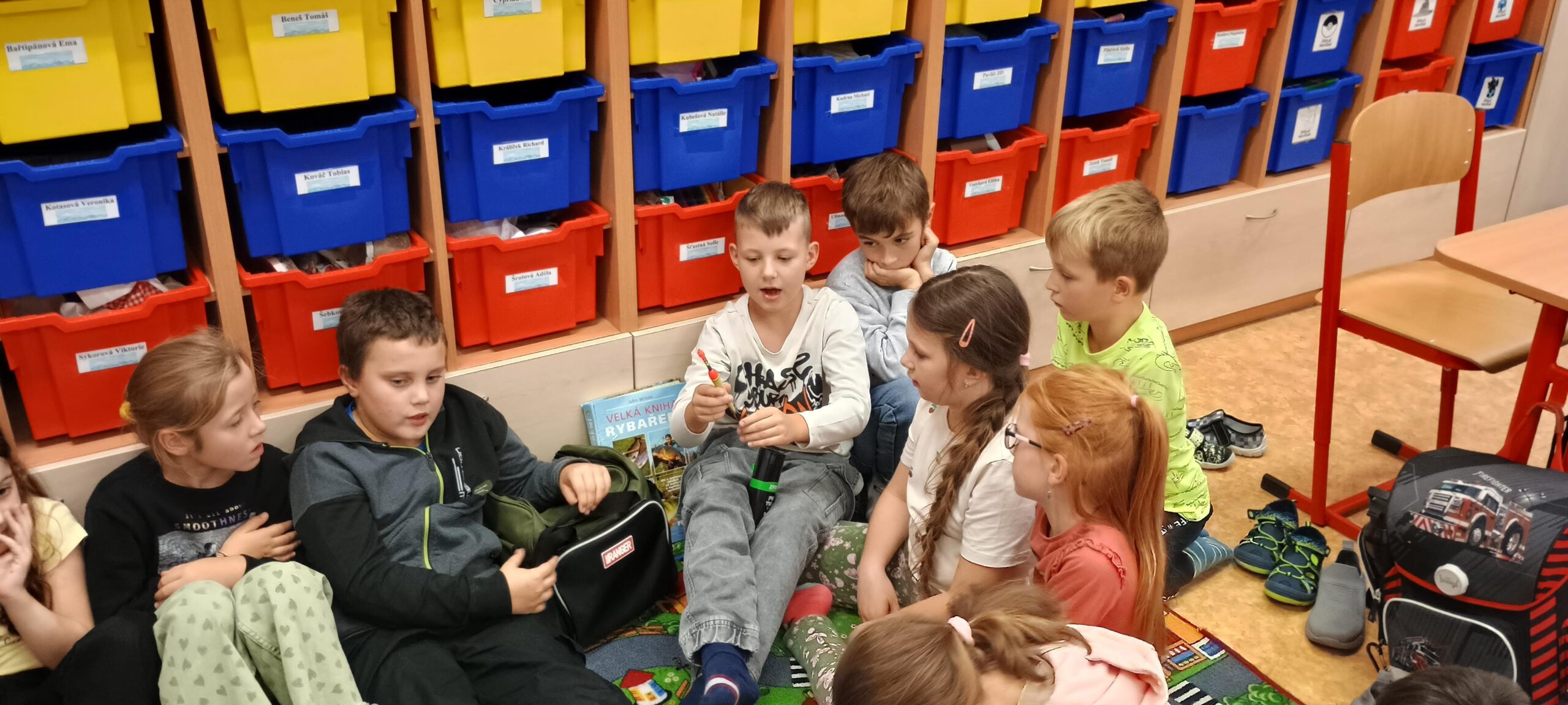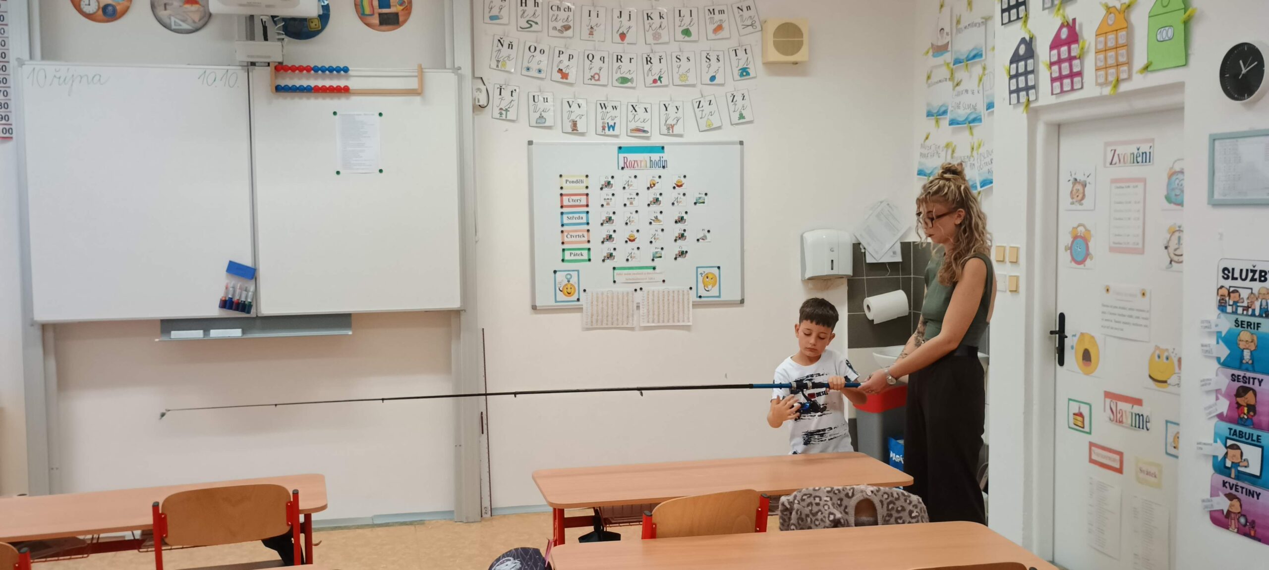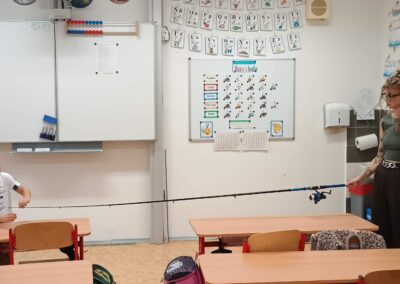 Pátek 10. 10. 2025 byl ve znamení rybaření. Zajímavou přednášku si připravili sami žáci. Dozvěděli jsme se, jaké jsou zásady správného rybolovu, jak se chovat k přírodě, rybám a také spoustu zajímavostí o tom, jaké ryby žijí v našich řekách a rybnících. Ukázali jsme si také různé druhy rybářského náčiní a návnad, které si naši spolužáci přinesli. Bylo úžasné vidět opravdové pruty, háčky, podběráky apod. Podívali jsme se i na zajímavé knihy o rybaření, ze kterých se dá hodně naučit. Celá přednáška byla moc povedená a všichni jsme získali spoustu nových a užitečných informací. Moc děkujeme našim spolužákům, kteří ji připravili – Kryštof Bařtipán, Tomáš Beneš, Ivo Cyprián, Marek Janoušek, Míša Kudrna, Majda Rendlová a Tomáš Zetek. Bylo to skvělé!