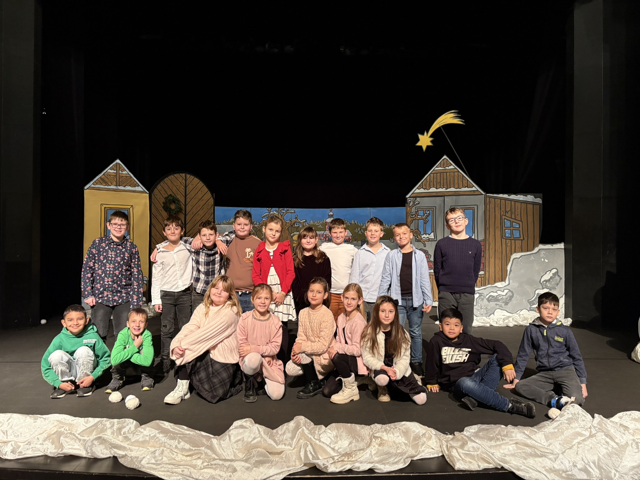 Dnes jsme byli ve Vrchlického divadle na představení Co se stalo o Vánocích a moc jsme si to užili. Celé vystoupení provázely známé české koledy, které vytvořily krásnou sváteční atmosféru. Herci byli skvělí, rychle nás vtáhli do děje a připomněli nám kouzlo blížících se Vánoc. Všem se představení opravdu líbilo a z divadla jsme odcházeli s úsměvem a vánoční náladou.