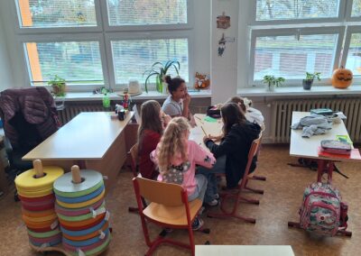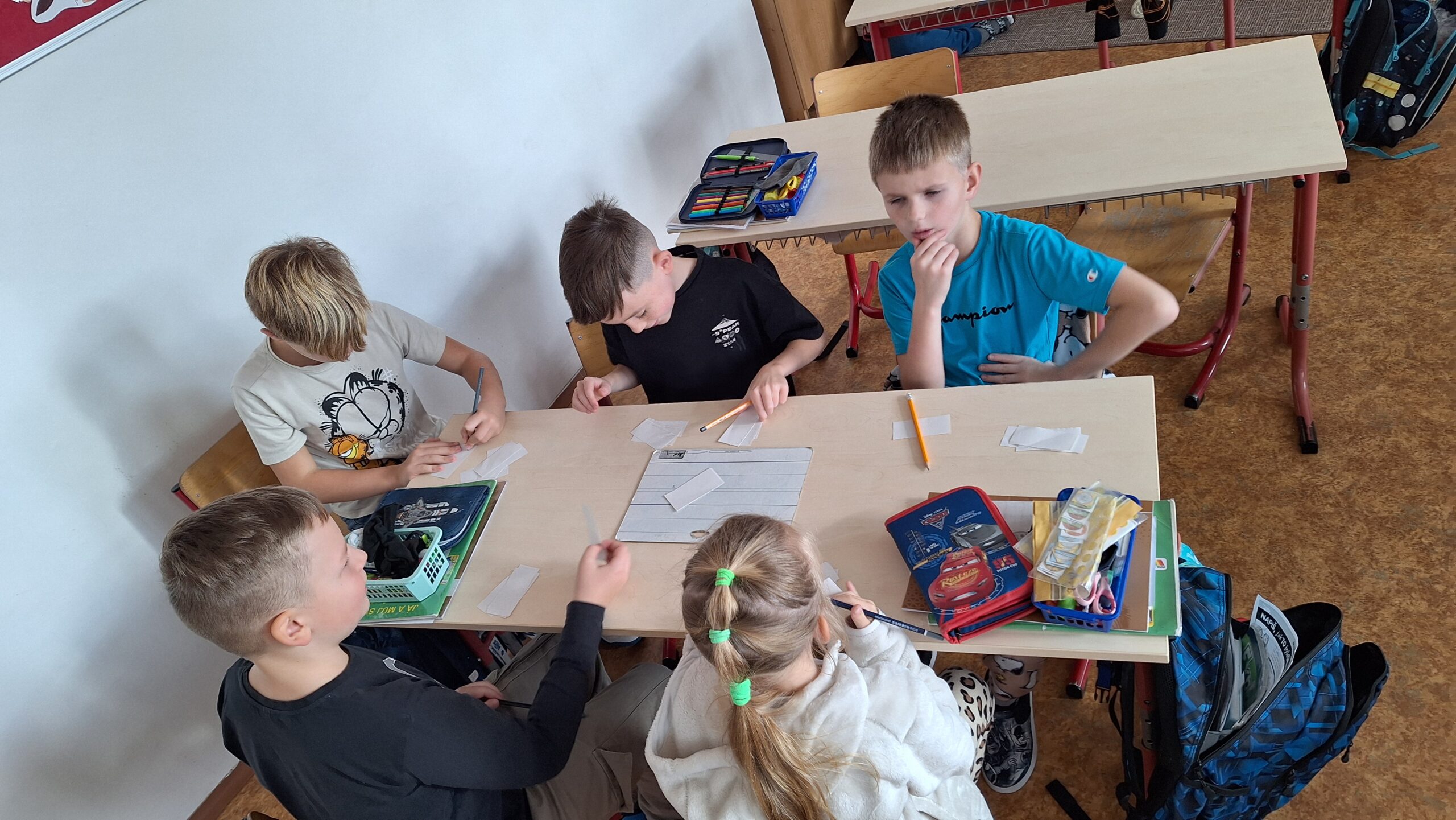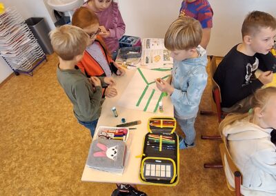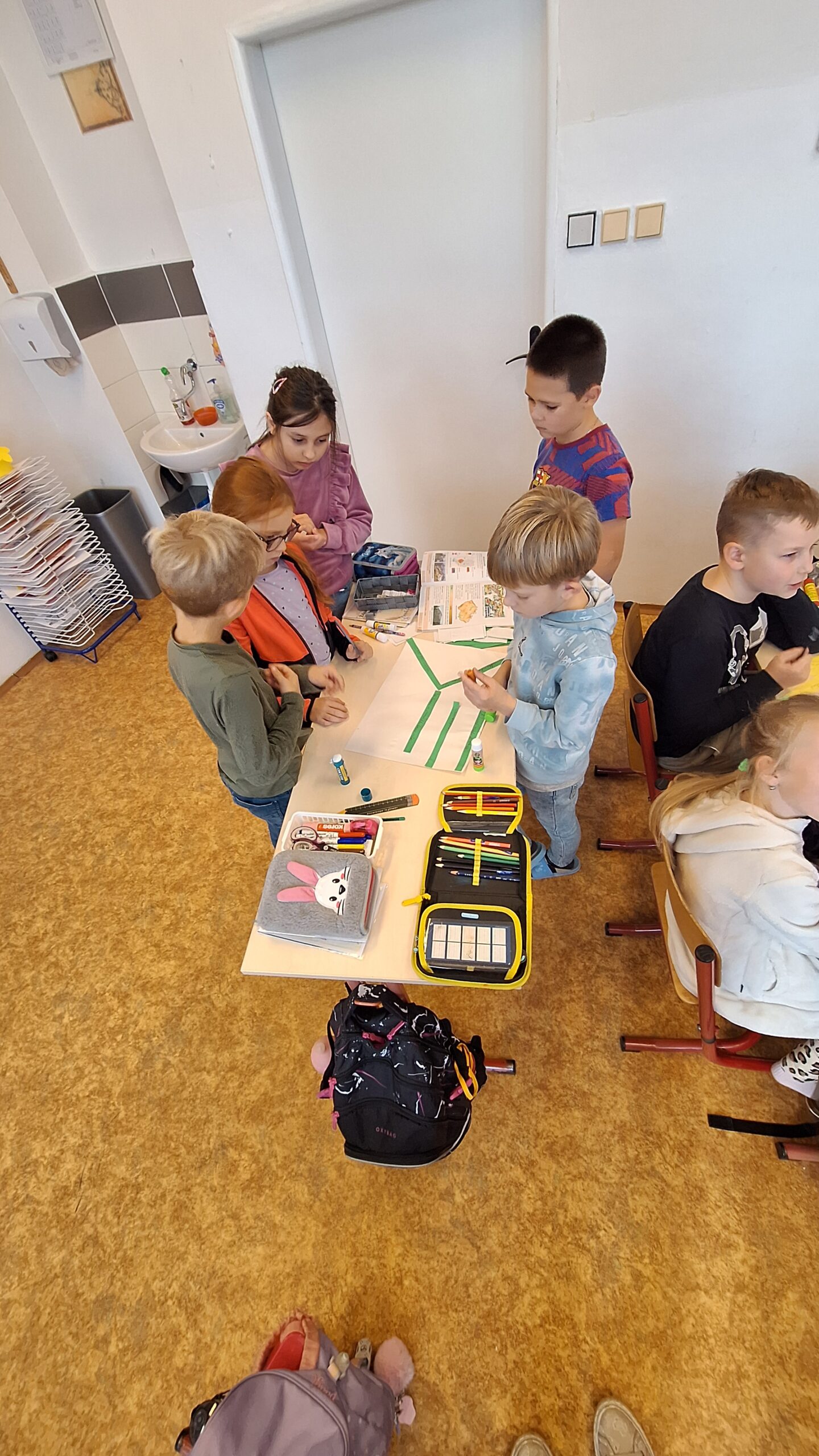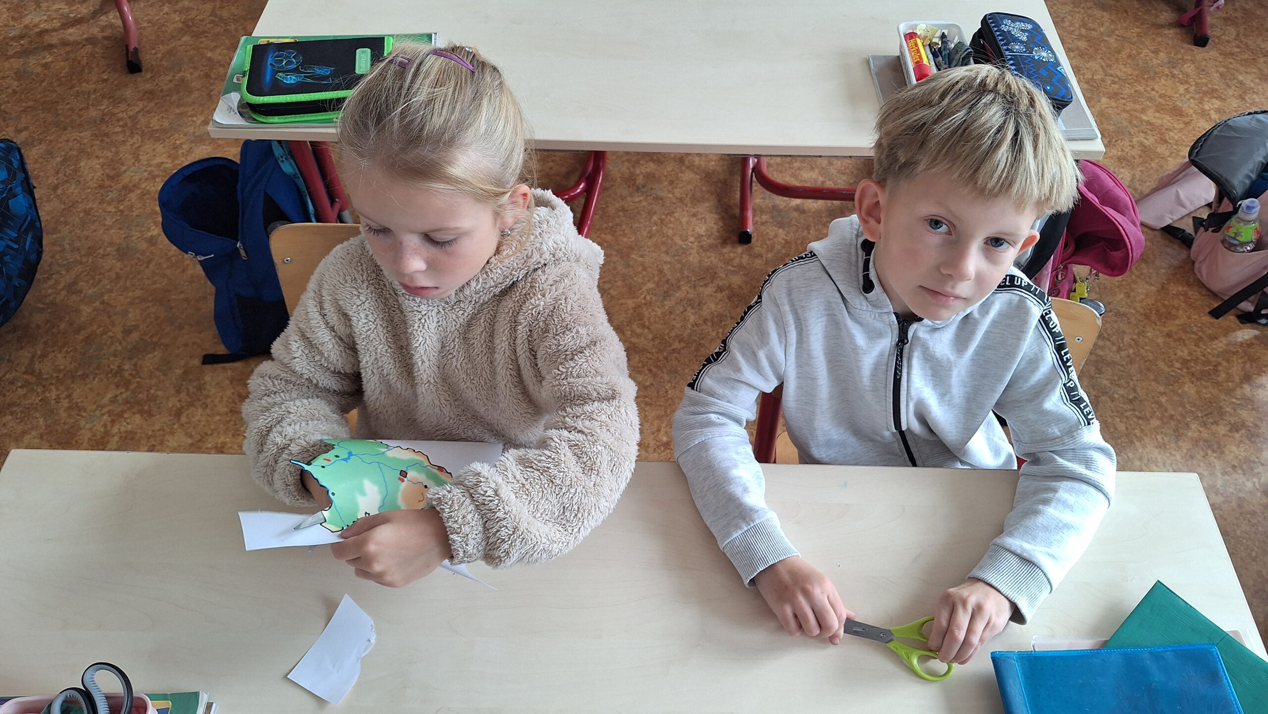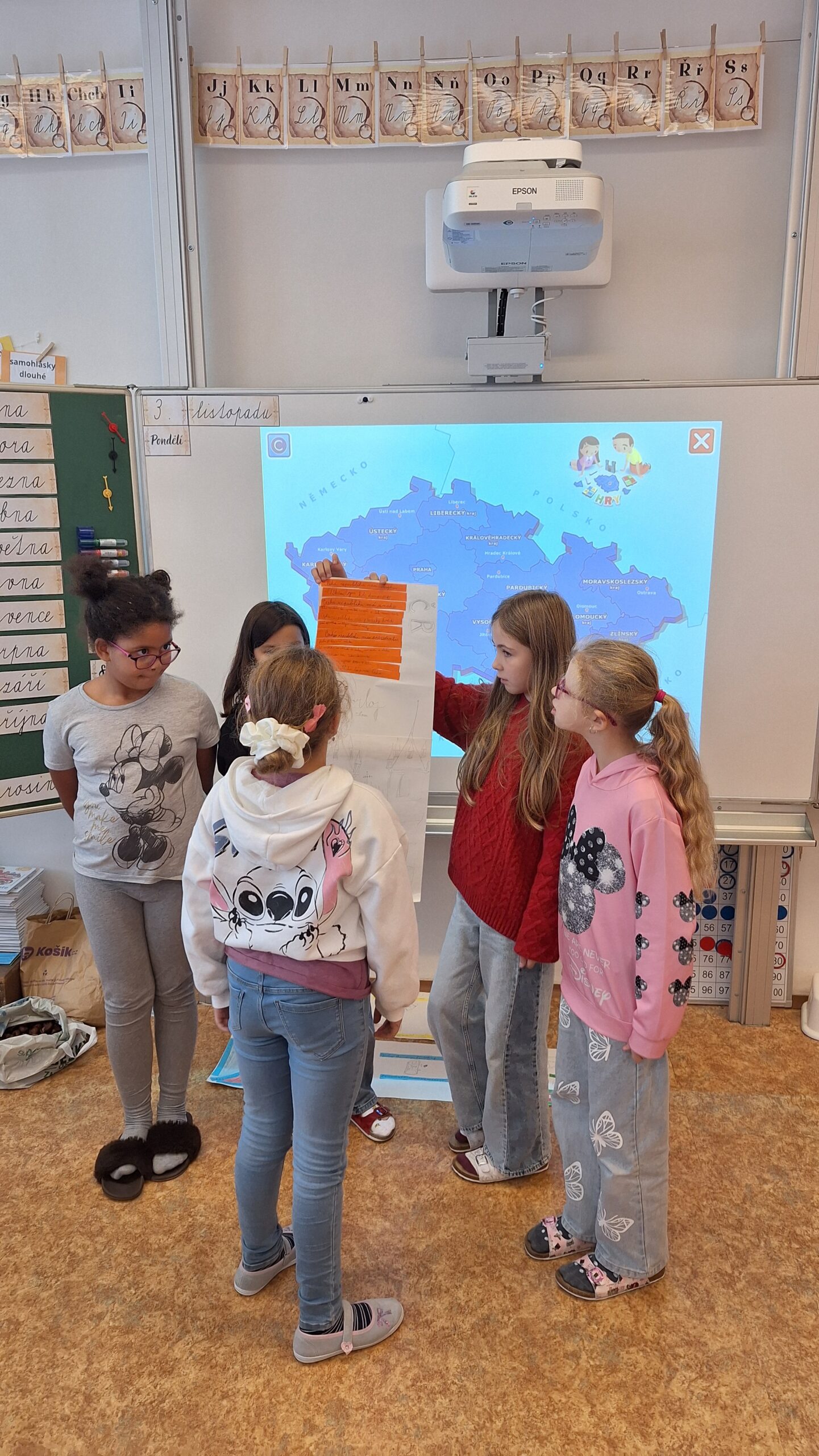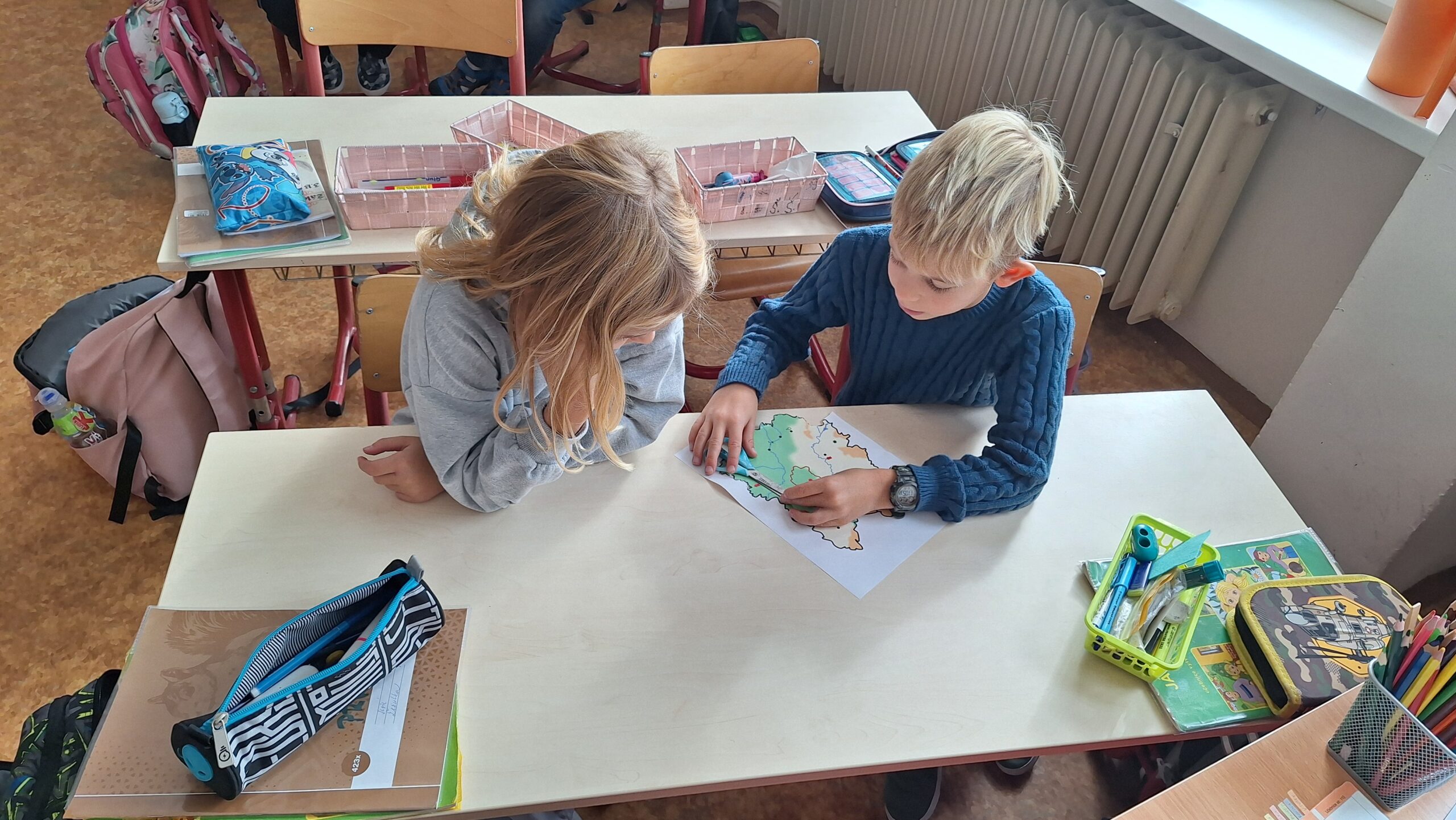 V hodinách prvouky se žáci pustili do skupinové práce zaměřené na poznávání povrchu České republiky. Každá skupina obdržela část mapy jednoho kraje s vyznačeným povrchem. Úkolem dětí bylo samostatně porovnávat tvary, vyhledávat a určit, o který kraj se jedná. Poté svůj kraj popsaly – zaměřily se na zajímavosti, významné body i charakteristické rysy krajiny.