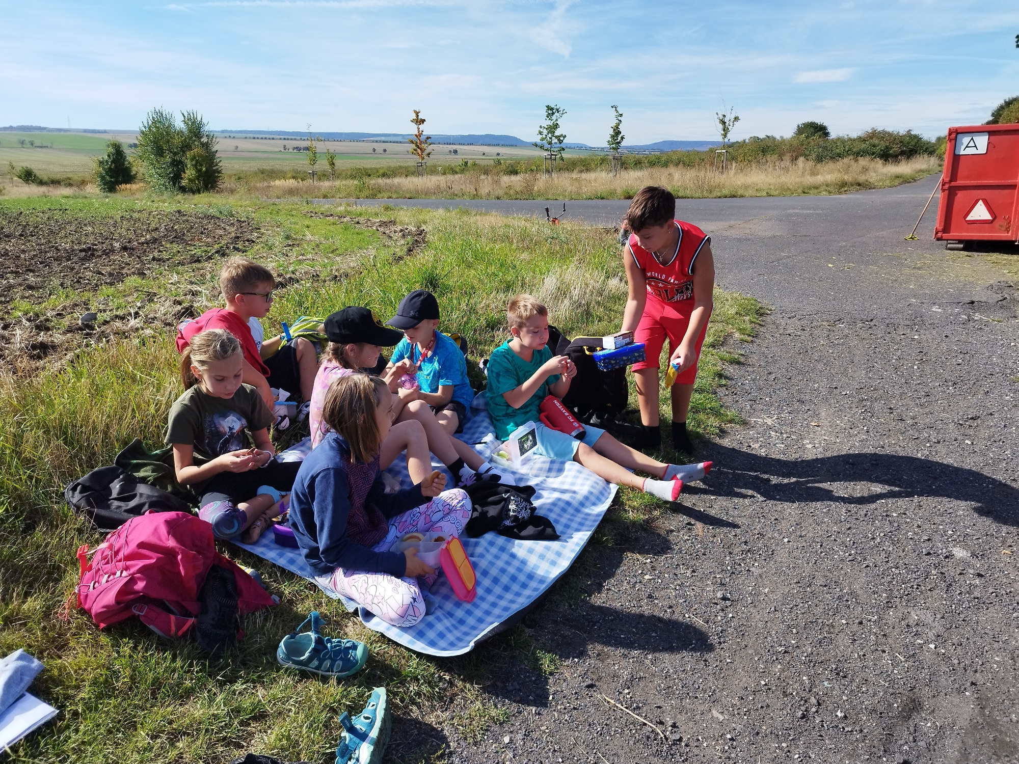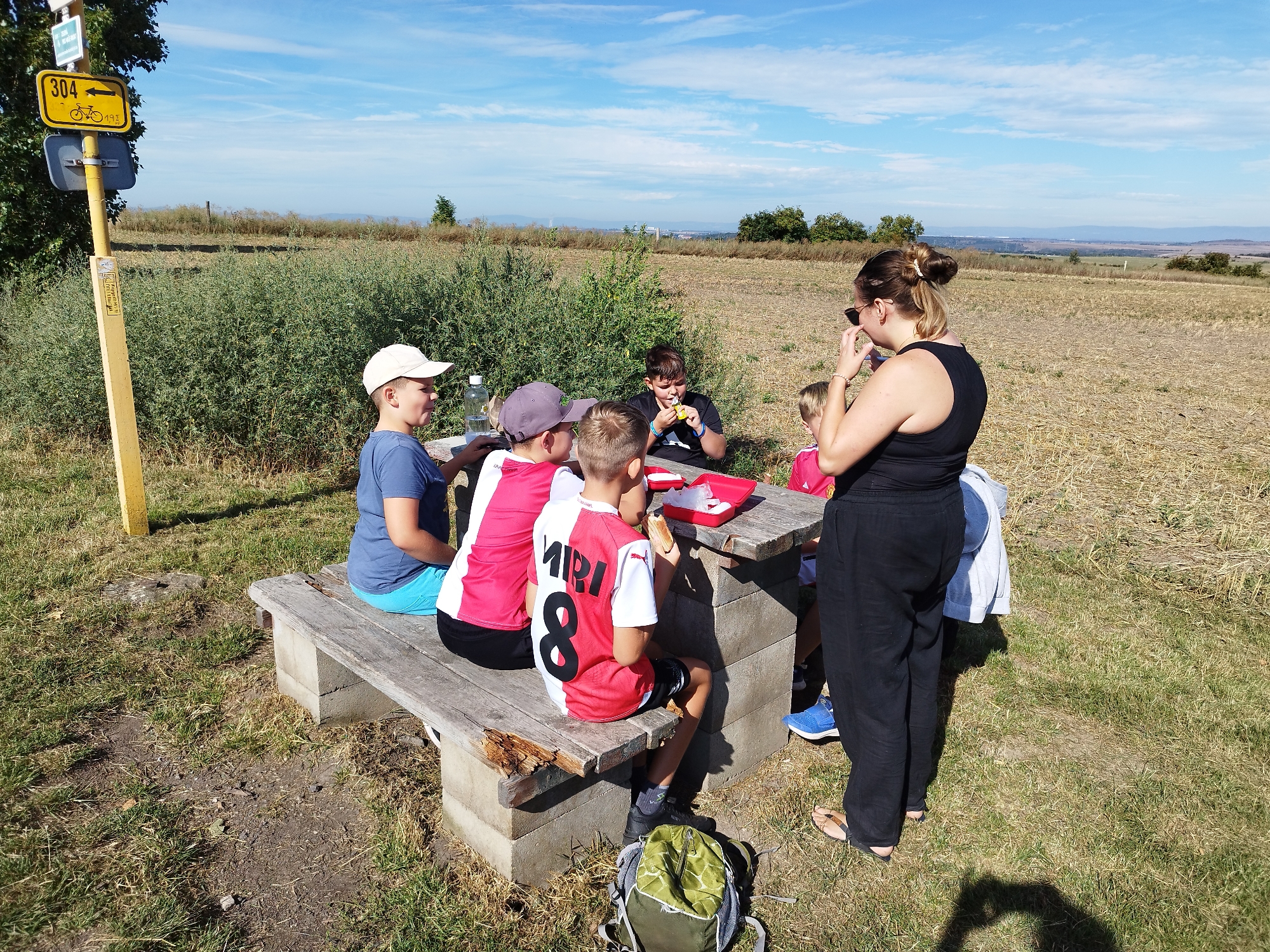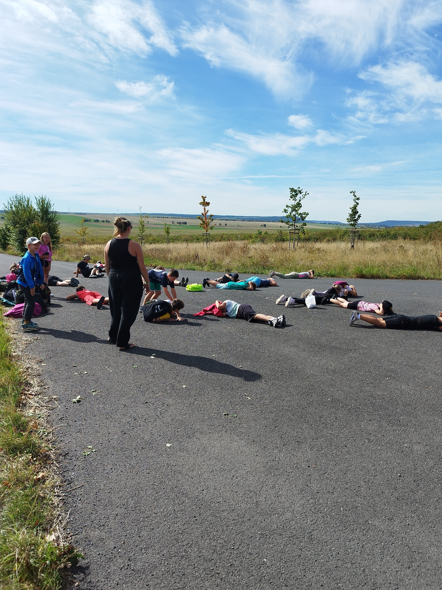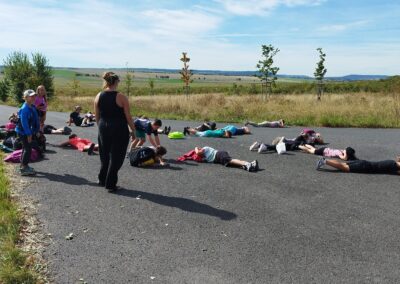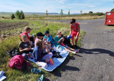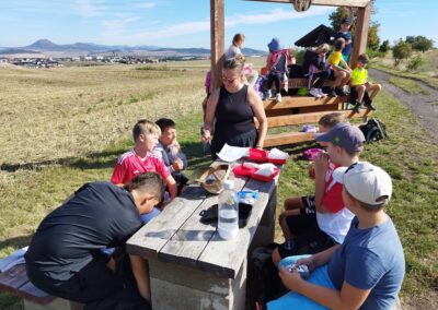 Po dosažení cíle a krátkém posilnění svačinou jsme se věnovali nácviku první pomoci. Žáci si nastínili různé krizové situace a diskutovali o správných postupech v daných chvílích. Zopakovali jsme si také zásady správného třídění odpadů a na závěr si zahráli pohybovou hru „dynamit“.