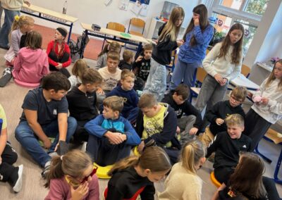 Projektový týden byl zakončen příjemným pátečním dopolednem, které jsme strávili společně s žáky šestého ročníku (6. B). Šestáci si pro nás připravili bohatý program plný informací, zábavný kvíz k ověření nově nabytých znalostí a dílničky, kde si žáci vyrobili typické německé předměty.