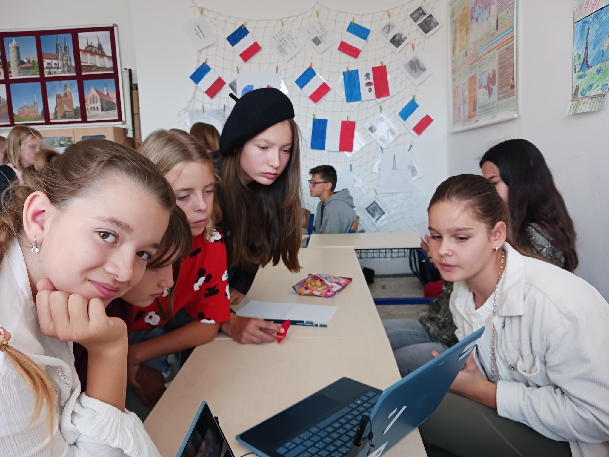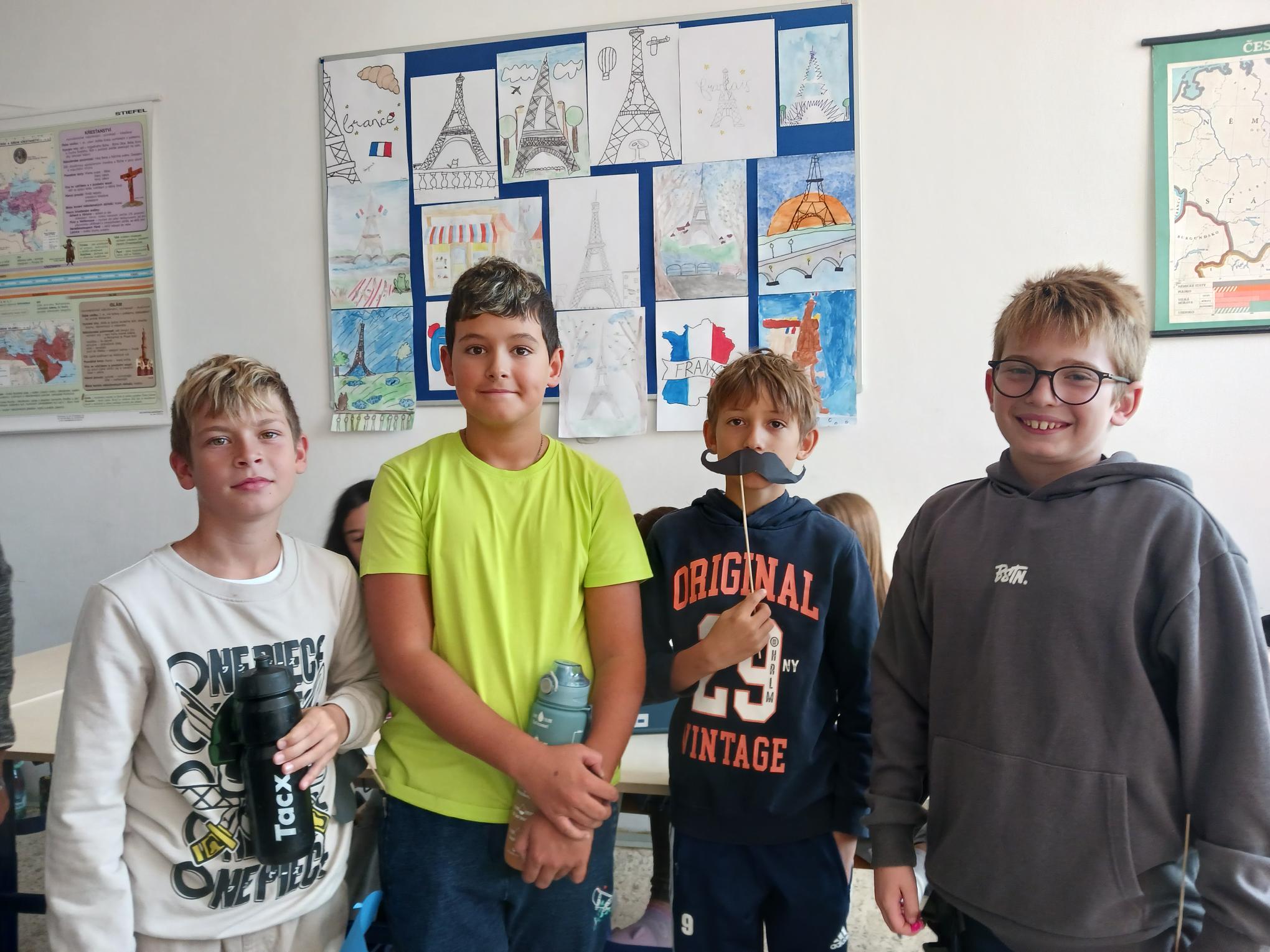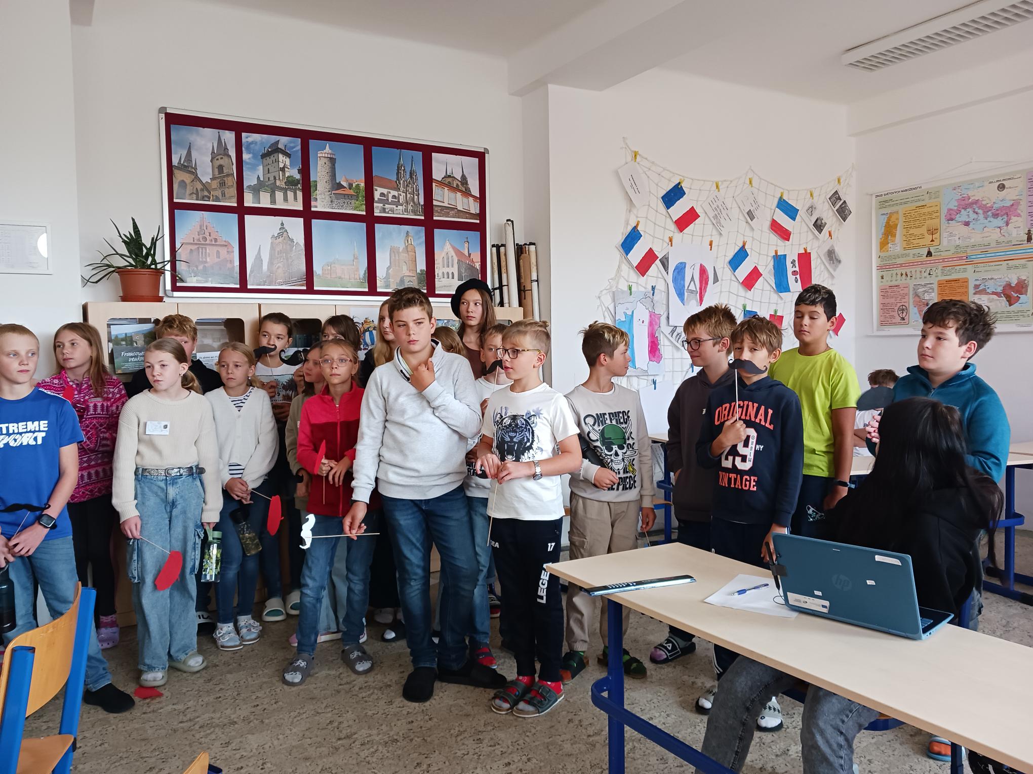 Ve dnech 29.9. – 3.10.2025 probíhal na naší škole Multikulturní týden. Každý ročník na II. stupni měl přiděleno jedno partnerské město Loun. Na naši třídu připadlo francouzské městečko Veneux-les-Sablons. Žáci se podrobněji seznámili s tímto městem a přiblížili si život ve Francii. V pátek 4.10.2025 pak proběhl projektový den, kdy naše třída připravila pro 5.A dopoledne soutěží s francouzskou tématikou. Na závěr celého dopoledne došlo k vyhodnocení jednotlivých soutěží a žáci si za úspěšná řešení odnesli sladkou odměnu.