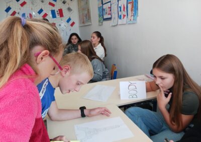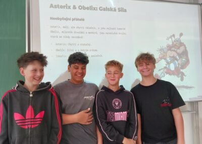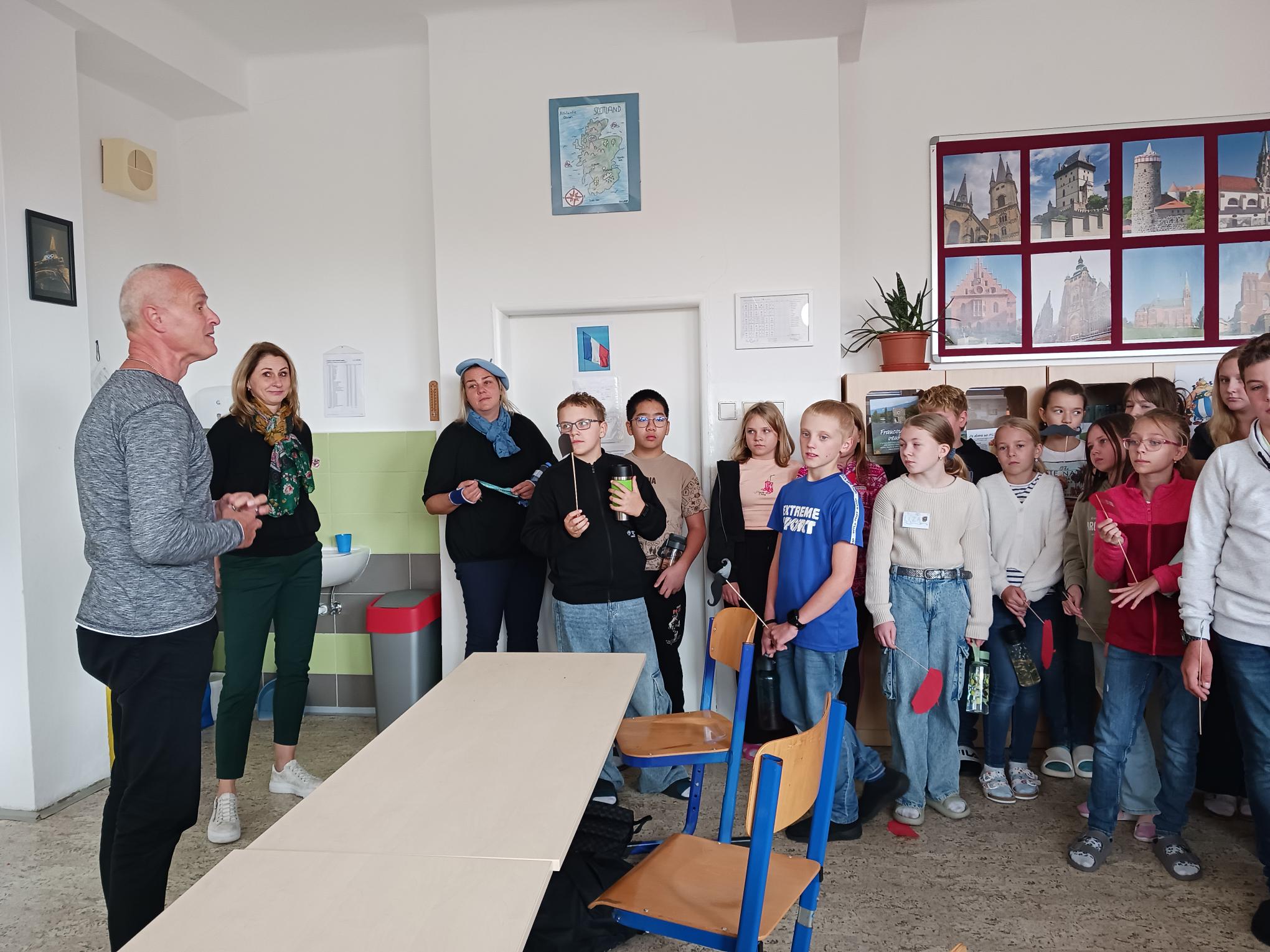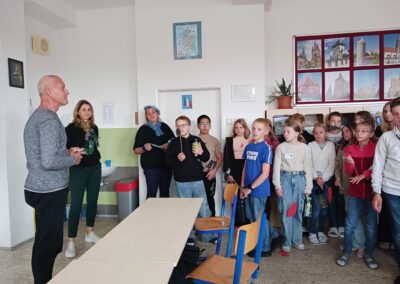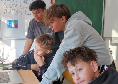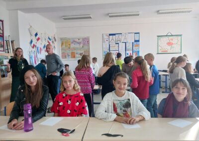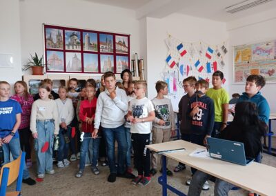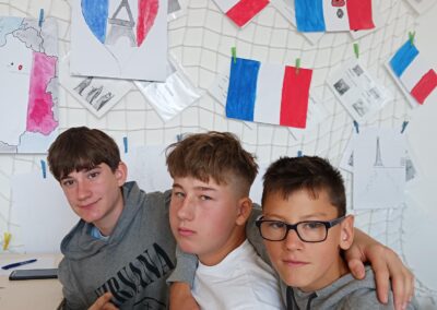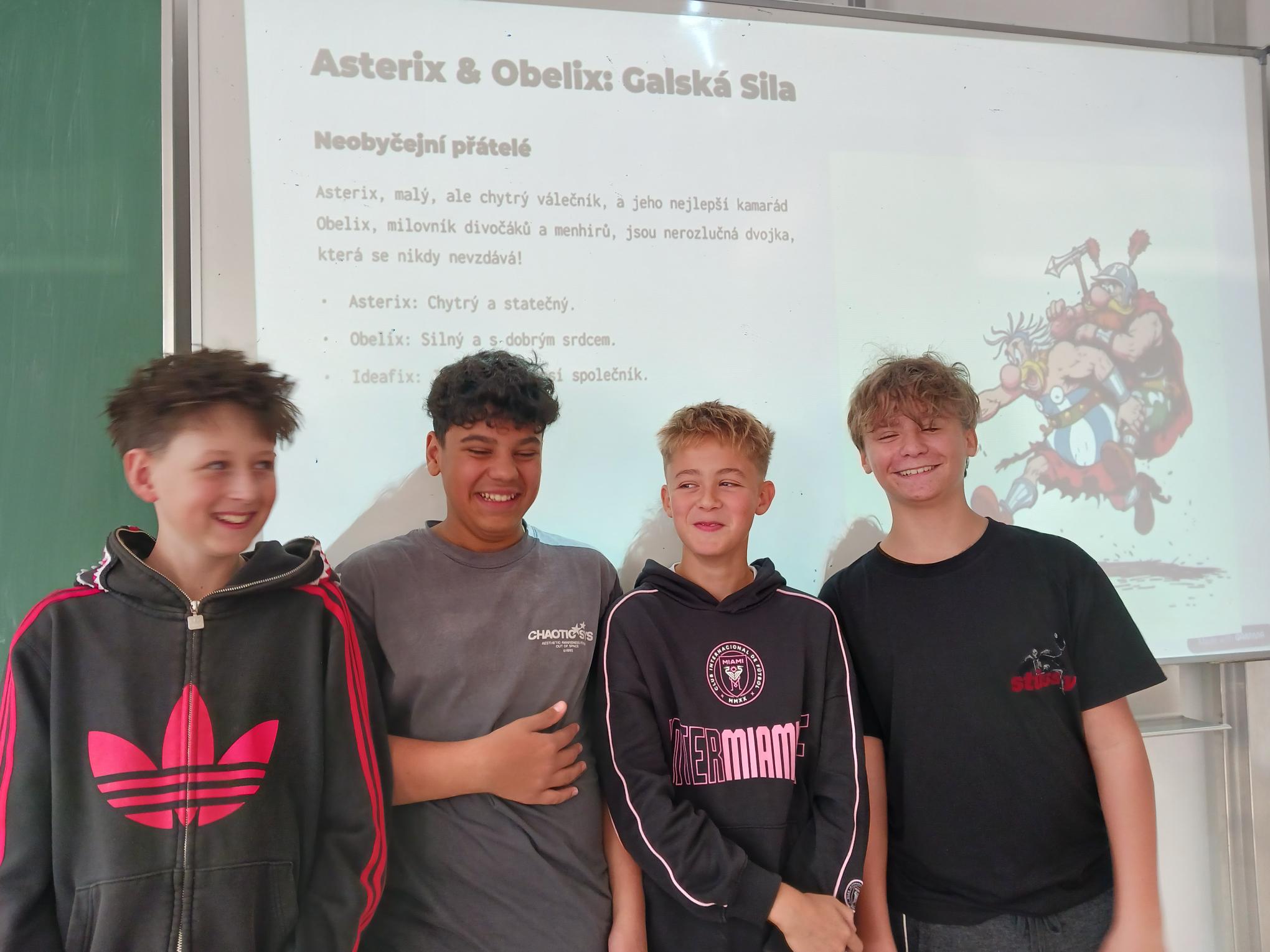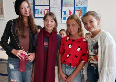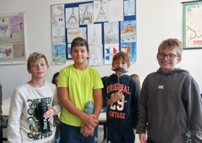 Ve dnech 29.9. – 3.10.2025 probíhal na naší škole Multikulturní týden. Každý ročník na II. stupni měl přiděleno jedno partnerské město Loun. Na naši třídu připadlo francouzské městečko Veneux-les-Sablons. Žáci se podrobněji seznámili s tímto městem a přiblížili si život ve Francii. V pátek 4.10.2025 pak proběhl projektový den, kdy naše třída připravila pro 5.A dopoledne soutěží s francouzskou tématikou. Na závěr celého dopoledne došlo k vyhodnocení jednotlivých soutěží a žáci si za úspěšná řešení odnesli sladkou odměnu.