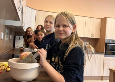 Pracovní výchova autor: Lenka Lapková | Říj 10, 2025 | 7.B-Aktualita V hodinách pracovní výchovy si chlapci připravili chutné jednohubky a dívky upekly štrůdl s jablíčky ze školní zahrady.