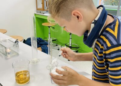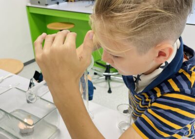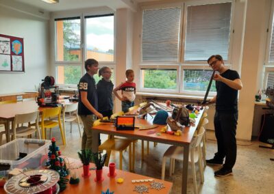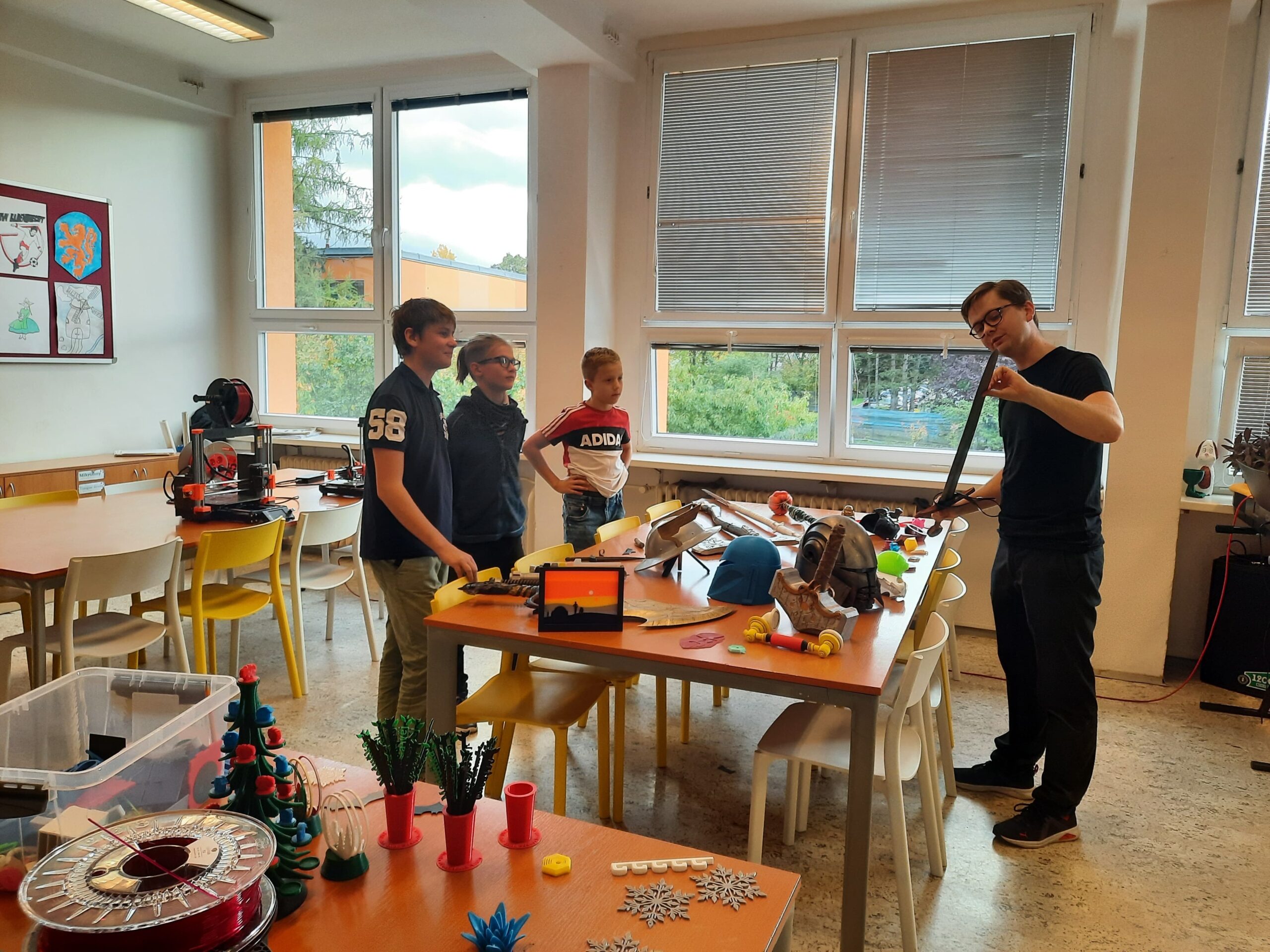 Poté žáci pracovali v odborných centrech, kde se střídaly zajímavé aktivity z různých oblastí (chemické pokusy, zkoumání pod mikroskopem, historie, matematika, 3D tisk a technika macramé). Na závěr odpoledne se k programu připojili i rodiče žáků.