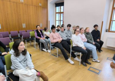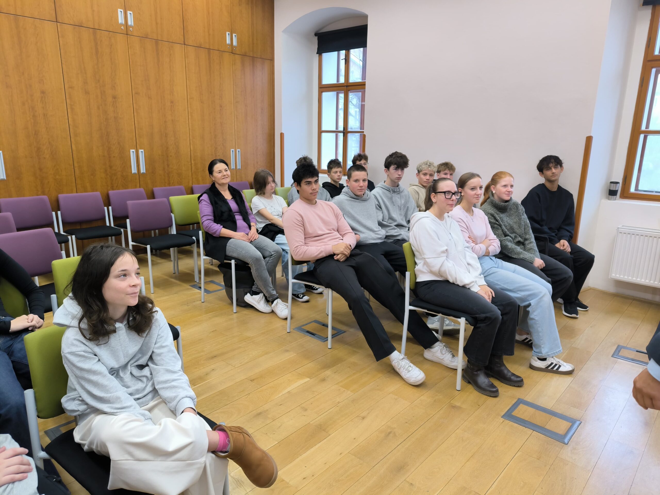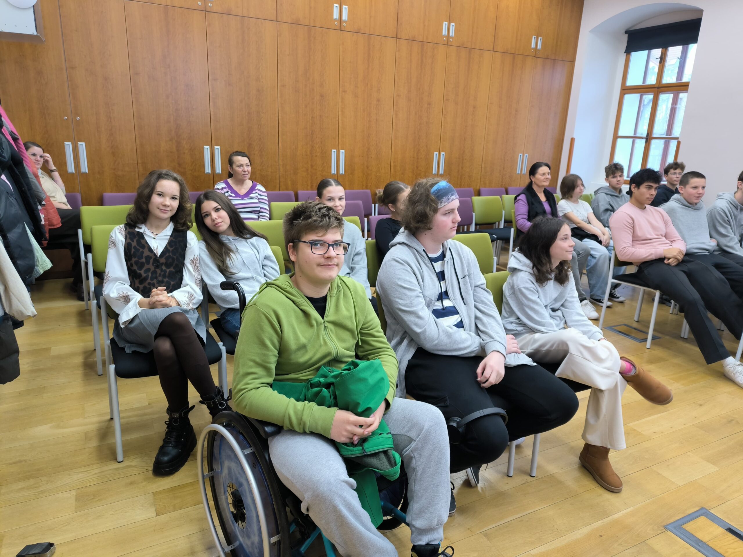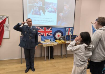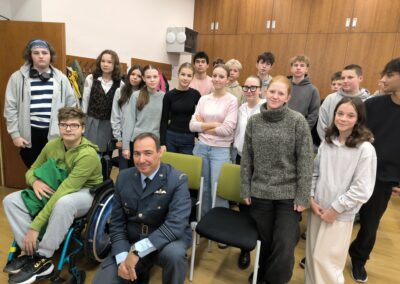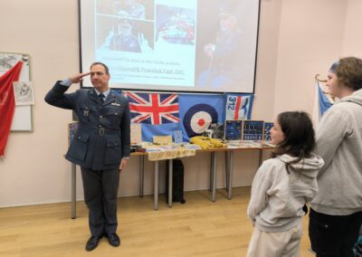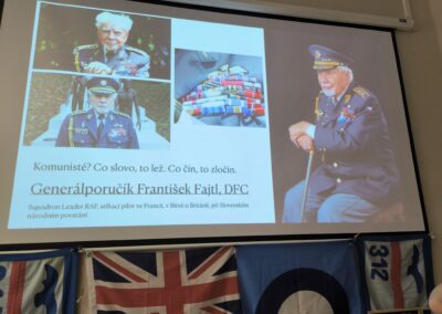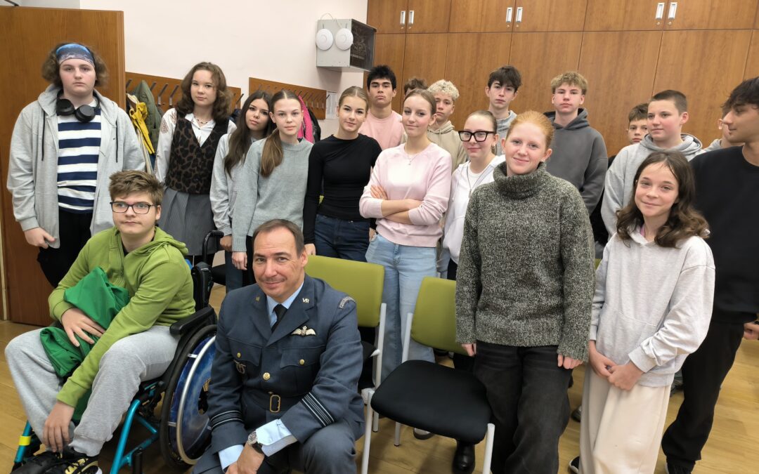 Žáci obou devátých tříd se ve čtvrtek 13. listopadu zúčastnili besedy o českých letcích bojujících v Británii proti německému letectvu Luftwaffe za 2. světové války. V téměř zaplněném sálku Městské knihovny v Lounech se pomyslně přenesli do předválečného i válkou zasaženého období a společně prožili životní příběh generálporučíka Františka Peřiny a jeho manželky Anny. Skvělým lektorem, který dokázal všechny zaujmout, byl PhDr. Daniel Švec. Pro zvýšení autentičnosti přednášel v dobové uniformě britského letce.