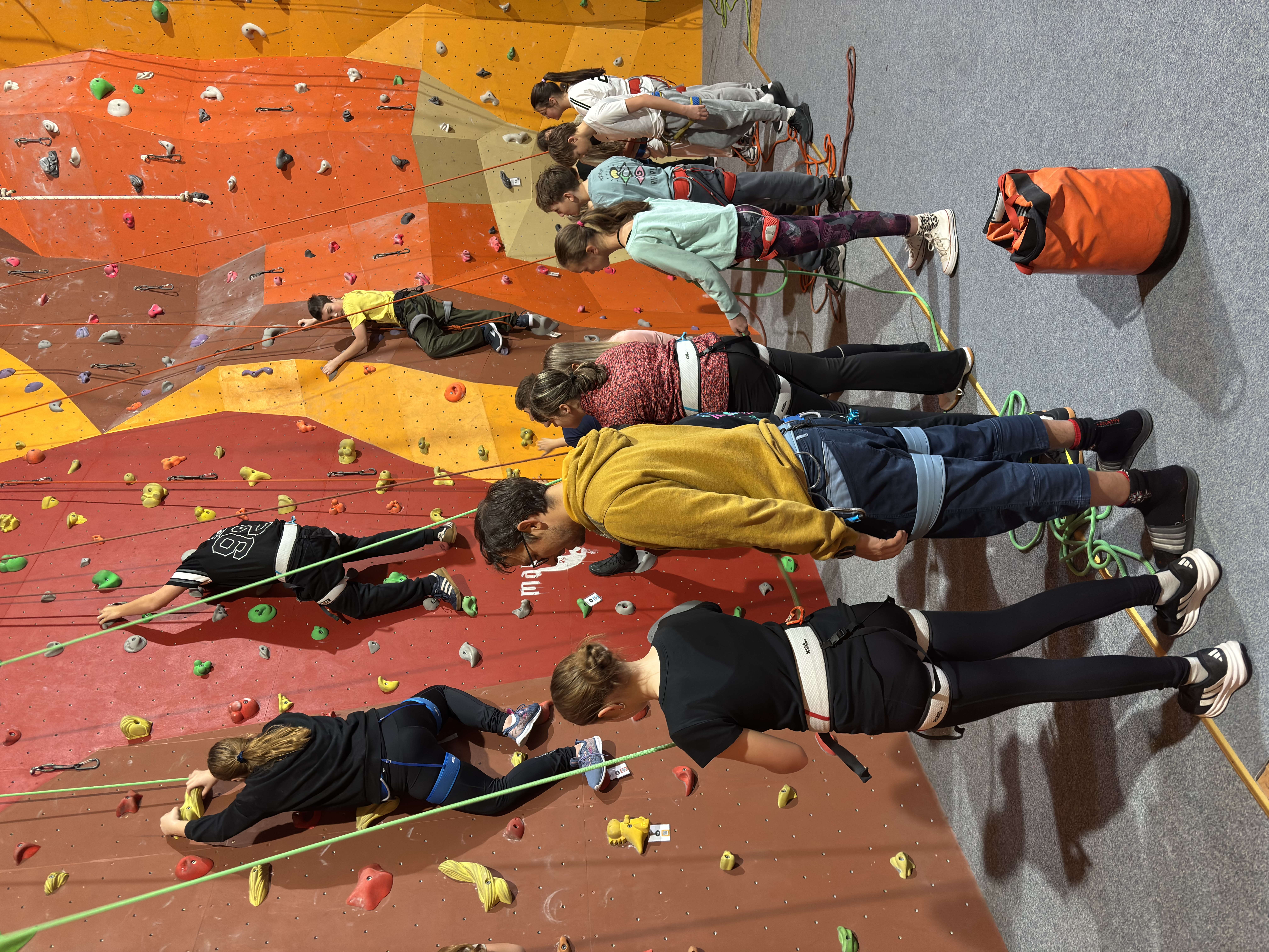 Dne 10. 12. 2025 jsme uspořádali pro členy Centra sportu vánoční speciál. Vydali jsme se do lezecké arény, kde si žáci vyzkoušeli úplně nový druh pohybu, překonávání překážek i sebe samotných. Pro mnohé šlo o první zkušenost s lezením, ale i ti největší začátečníci se s výzvou poprali s odvahou a úsměvem. Pod vedením zkušených instruktorů se děti naučily základní techniky bezpečného lezení, práci s jištěním a postupně zdolávaly stěny různé obtížnosti. Bylo skvělé sledovat, jak každý krok vzhůru přinášel nejen fyzickou námahu, ale i radost z překonání vlastních hranic.