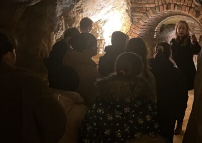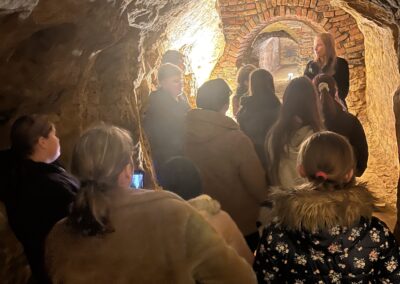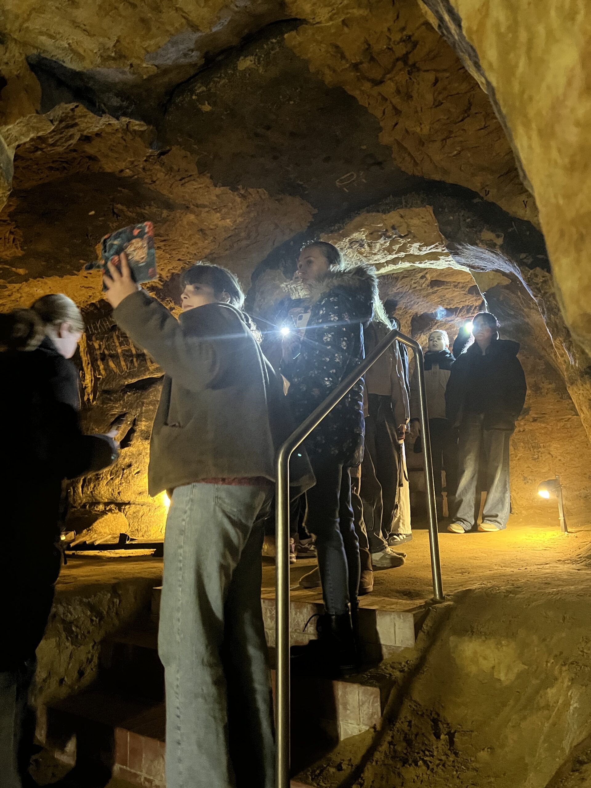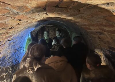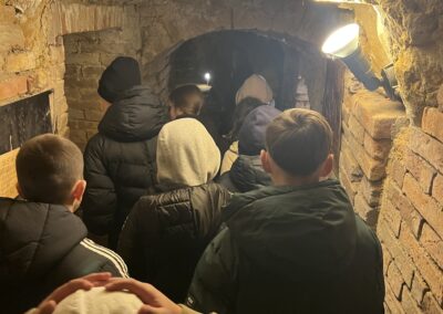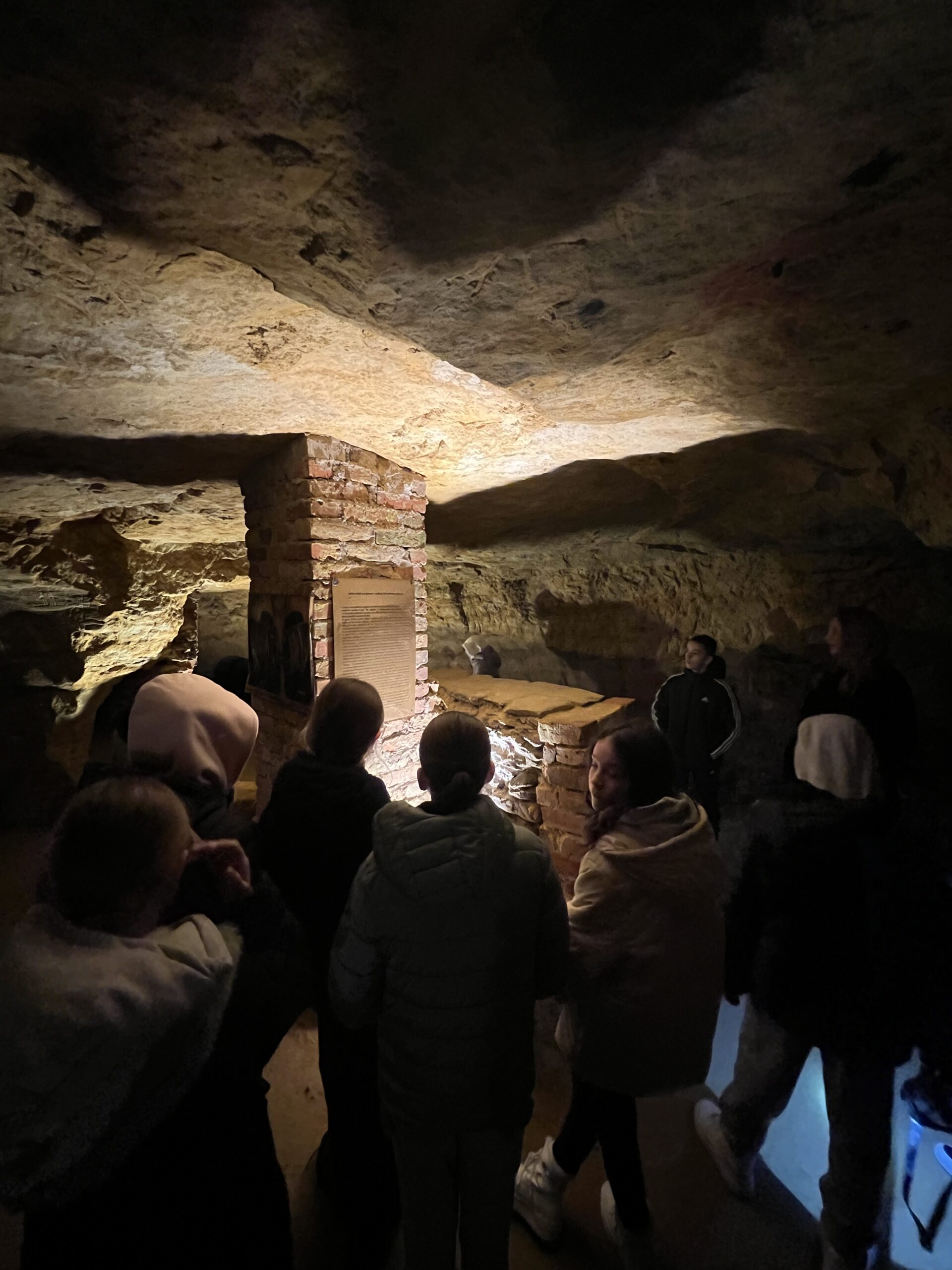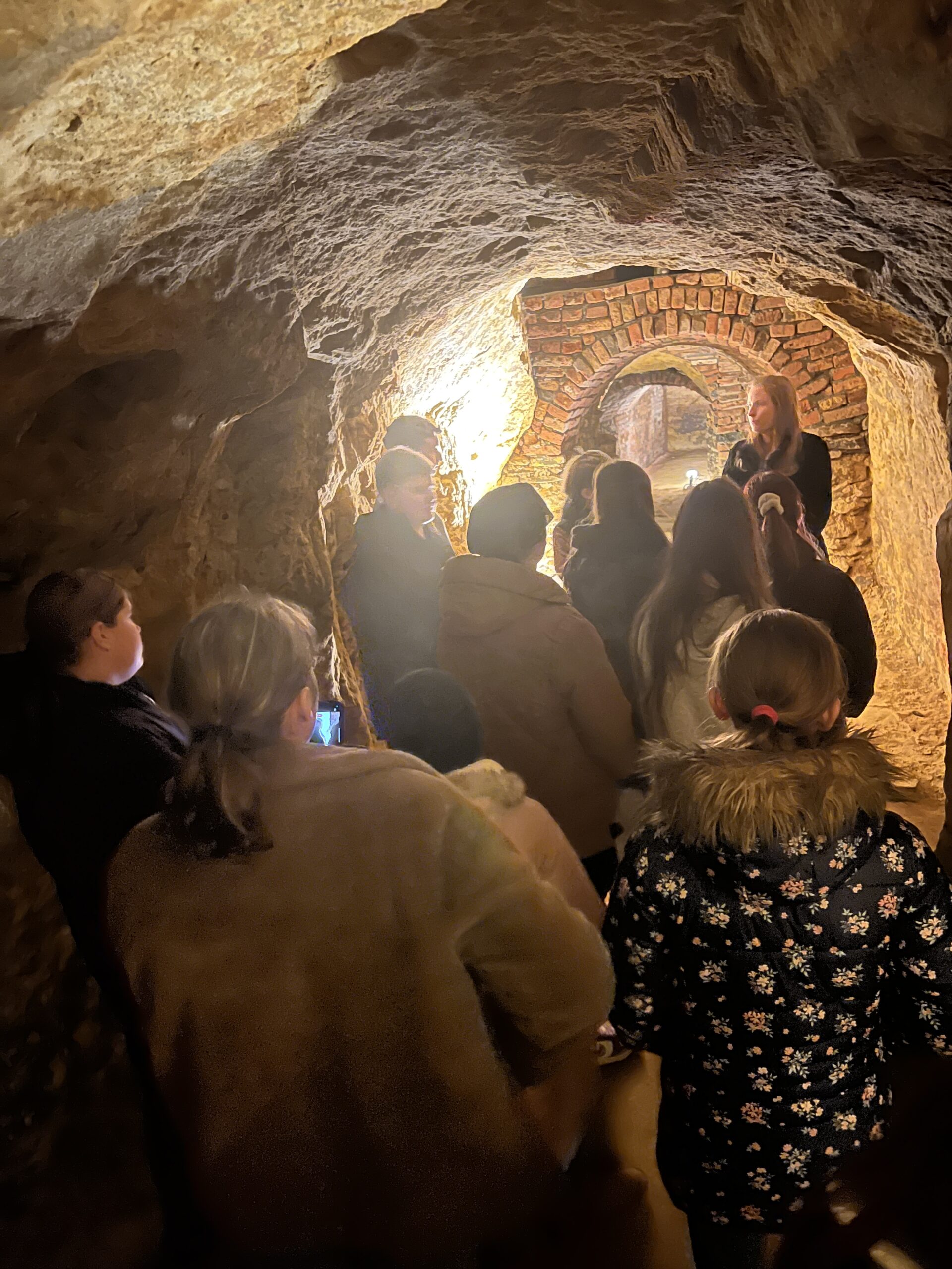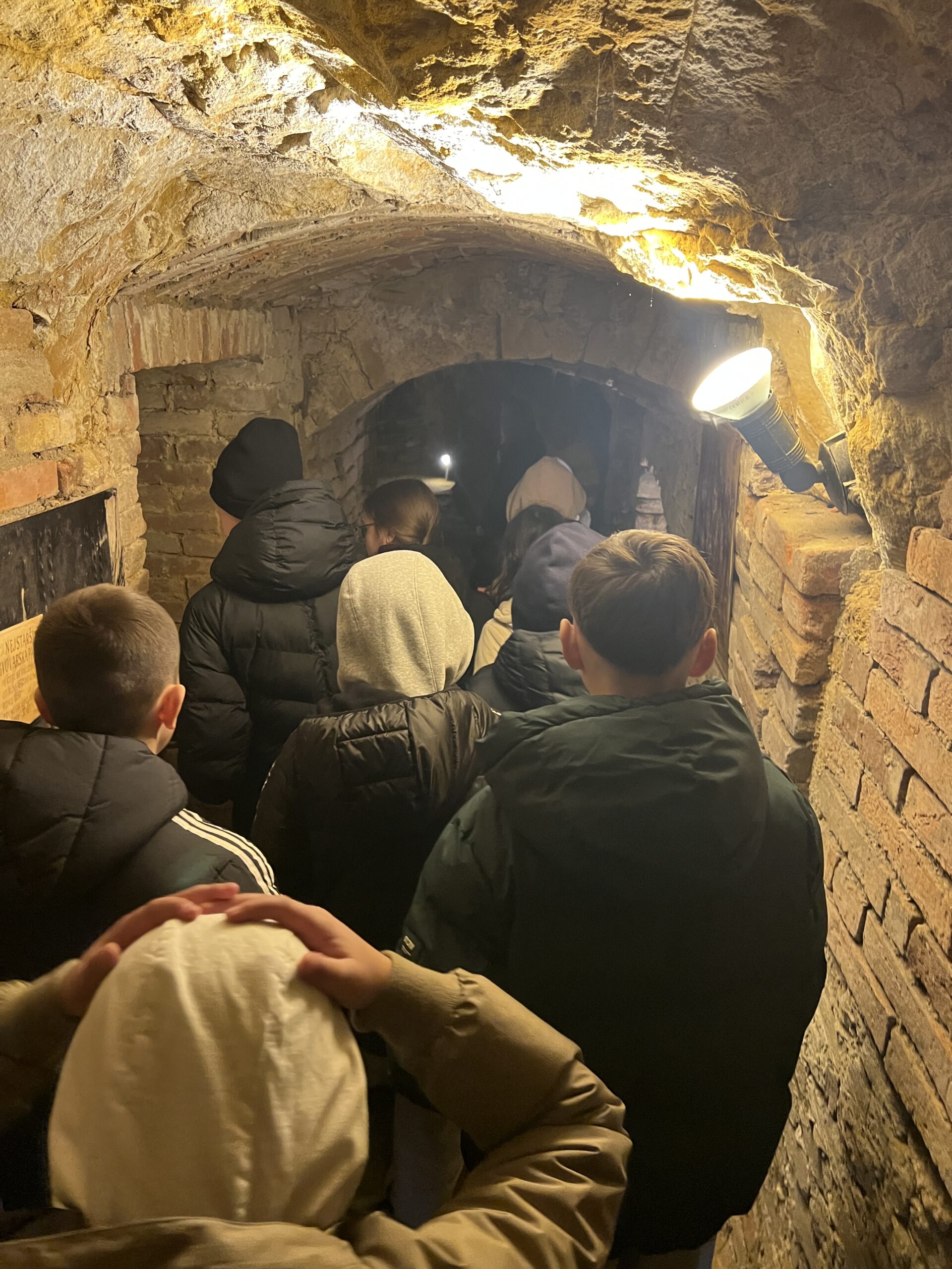 Dalším programem byla návštěva Městských historických sklepů v Jirkově a hasičské interaktivní expozice, kde jsme se ponořili do atmosféry minulosti. Během prohlídky se žáci dozvěděli mnoho zajímavostí o historii města i samotných sklepních prostor – jak vznikaly, k čemu sloužily a proč jsou dodnes důležitou součástí jirkovského kulturního dědictví. Tajemná zákoutí, chladné stěny a poutavý výklad průvodce vytvořily zážitek, na který se hned tak nezapomíná.