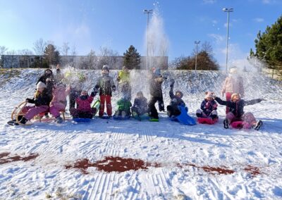 Zima letos nadělila dětem ze školní družiny ideální podmínky k venkovním aktivitám. Jakmile napadl sníh, neváhaly a s nadšením se pustily do zimních radovánek. Nejoblíbenější z nich bylo bezesporu bobování, které vykouzlilo úsměvy na tvářích všech dětí.