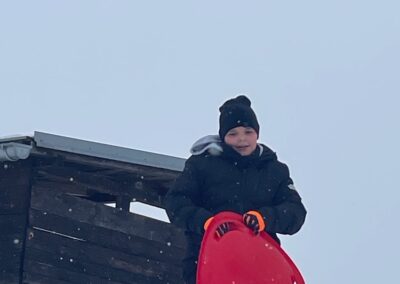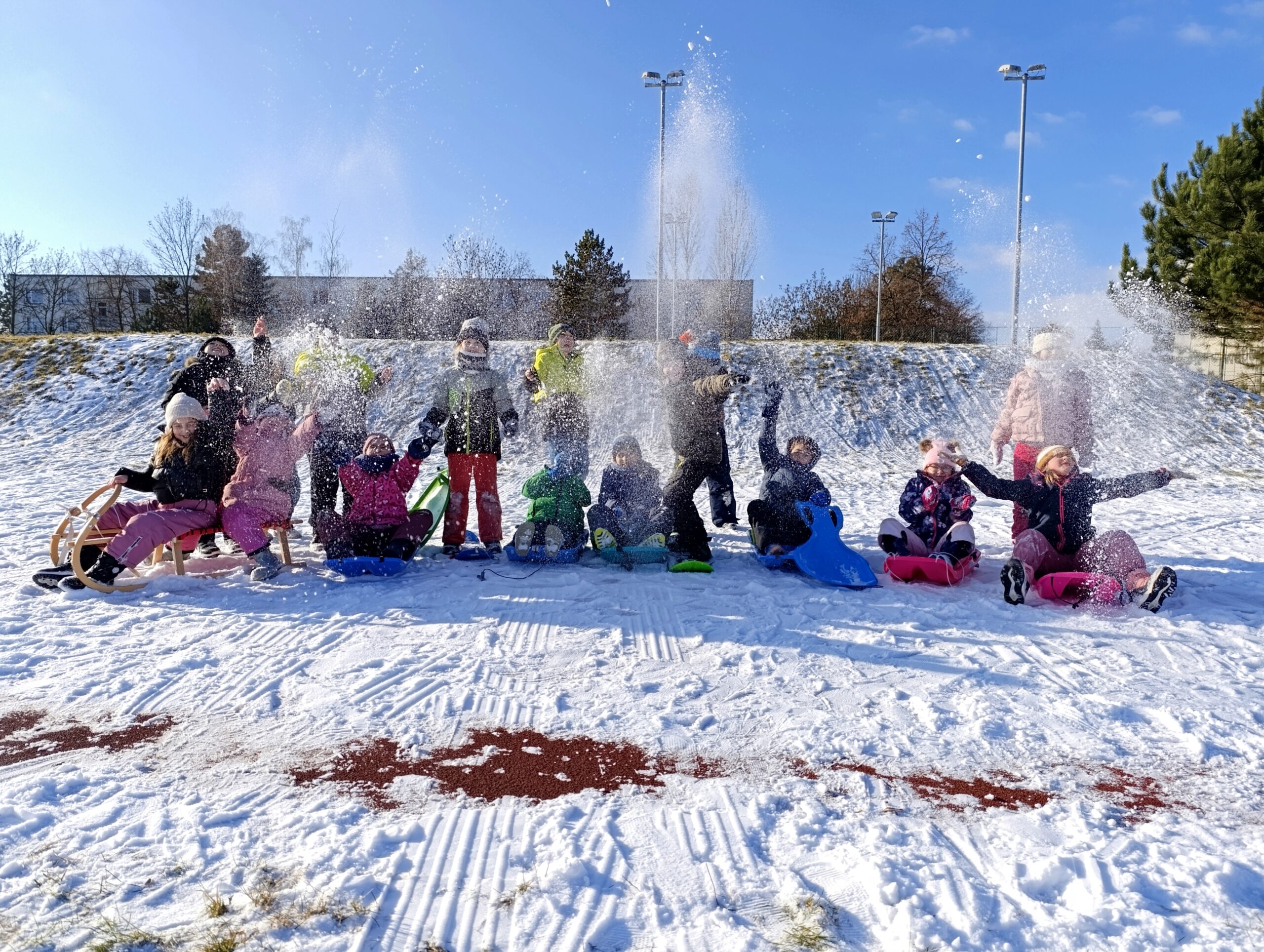 Každé odpoledne se kopec poblíž školy proměnil v místo plné smíchu, radosti a veselého dovádění. Děti si přinesly boby, kluzáky a střídaly se v jízdách z kopce dolů. Nechybělo ani stavění sněhuláků, koulování a společné hry na sněhu.