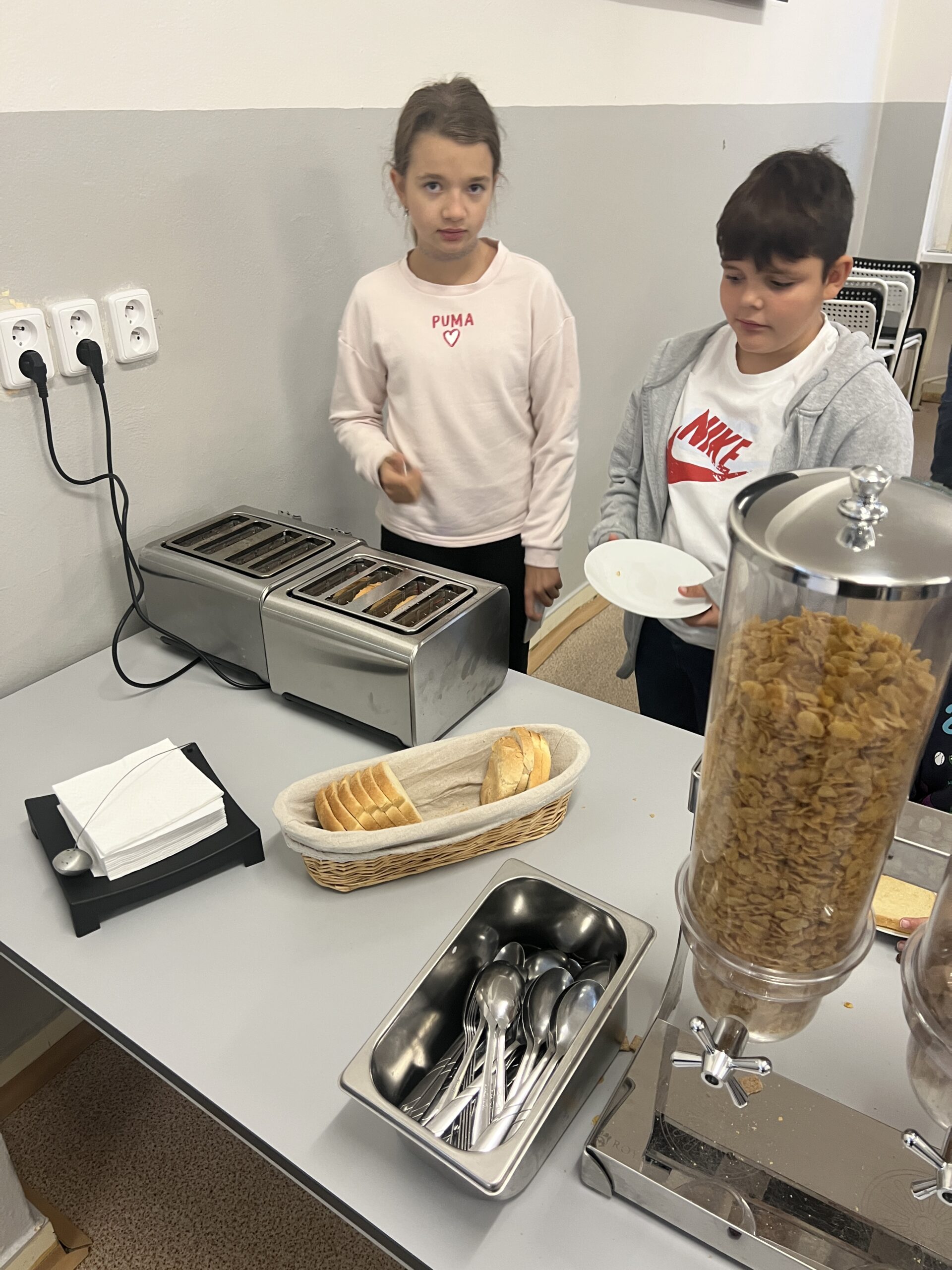 Od 1. října 2025 jsme v naší škole znovu zahájili snídaně pro žáky. Tato oblíbená možnost umožňuje dětem začít den klidně, příjemně a s dobrým jídlem.