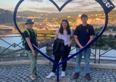 Ve třetím zářijovém týdnu se naši dva žáci Tobiáš Štrympl a Zdeněk Jonáš ze 7. ročníku v doprovodu paní učitelky Jurčákové zúčastnili pobytové akce s názvem Tajemství Purkyňova odkazu, kterou pořádala Přírodovědecká fakulta UJEP v Ústí nad Labem. Program byl bohatý a různorodý. Žáci si vyzkoušeli celou řadu chemických a fyzikálních pokusů, zúčastnili se přednášky profesora z Indie, která proběhla celá v angličtině, objevovali svět pomocí virtuální reality, kde navštívili přírodní i městské scenérie po celém světě, a na interaktivním písku si zkusili tvoření vrstevnic a modelování krajiny. Pomocí měřiče hluku také zjišťovali hladinu zvuku v areálu kampusu. V polovině týdne se zúčastnili výjezdu do ekocentra Střevlík, kde se blíže seznámili s domácími zvířaty a jejich chovem (kozy, ovce, slepice), a poté absolvovali túru do vysokohorských bučin, kde plnili úkoly na téma ekosystém lesa. Součástí výletu byl také výšlap ke skalnímu hradu.