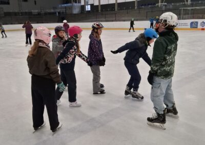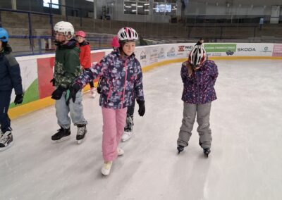 během probíhajících stavebních prací ve škole se snažíme, aby hodiny tělesné výchovy zůstaly pro děti pestré a přínosné. Místo klasického cvičení tak pravidelně vyrážíme na bruslení a plavání, kde mají žáci možnost rozvíjet pohybové dovednosti v jiném prostředí.